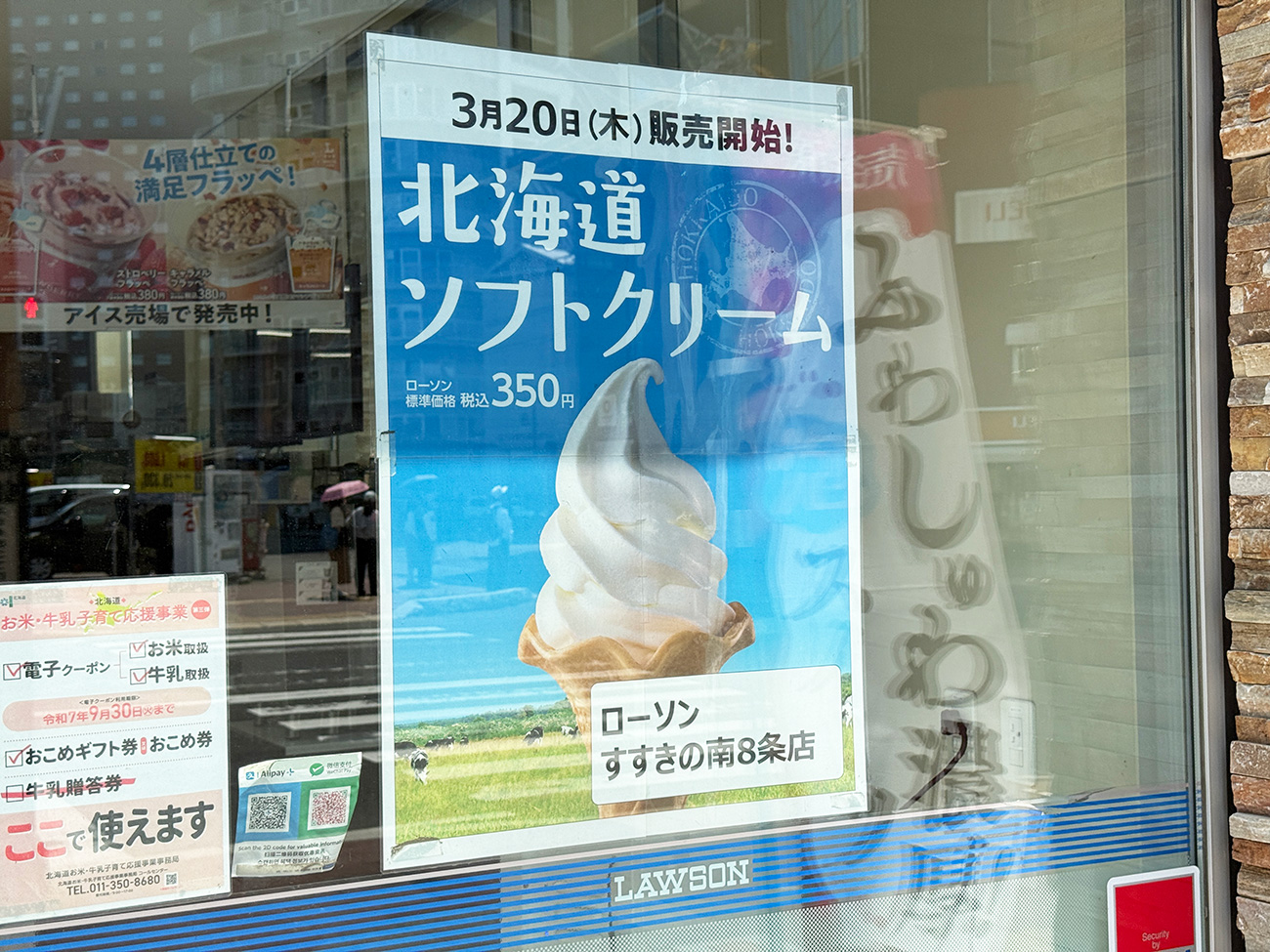 よく見ると店頭に3月20日から発売になったという「北海道ソフトクリーム」のポスターが貼られていました。