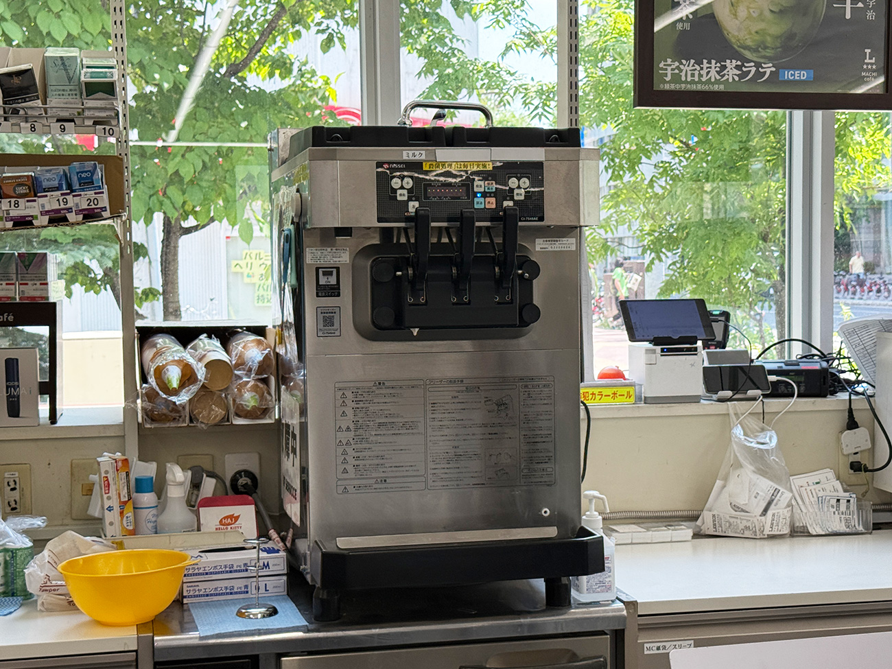 さらにレジ奥にはソフトクリームサーバーを発見。ミニストップのように注文を受けてからソフトクリームを作るようになっていて、しかも最近のリニューアルでソフトクリームサーバーを刷新。よりなめらかな口当たりとふんわりとした食感を味わえるようになったのだそう。