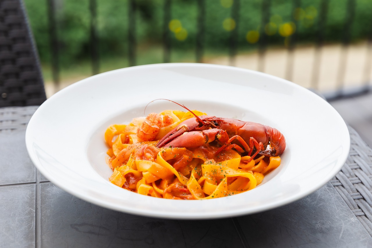 さっそく食の体験を。期間中に毎日食べられるという「ウチダザリガニでつくるアメリケーヌパスタ」を試食しました。スウェーデンでは8月が本格的なザリガニシーズンとのことですが、濃厚な味わいに満足するはず。