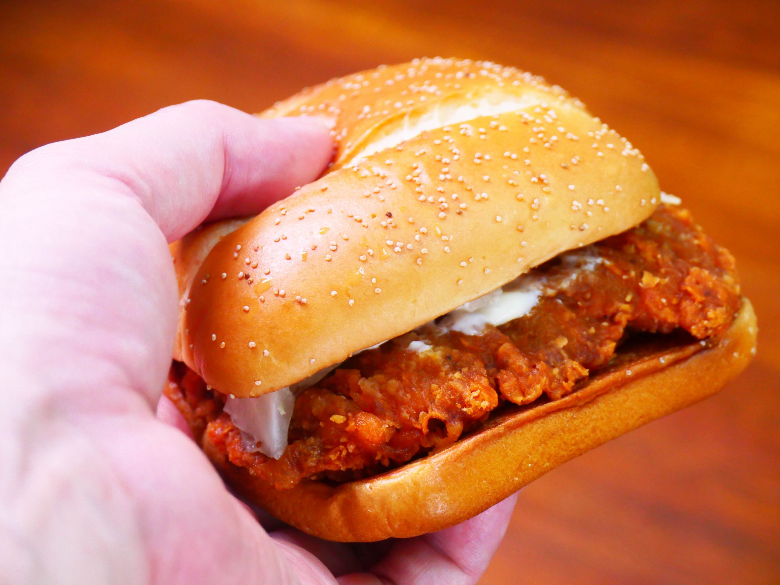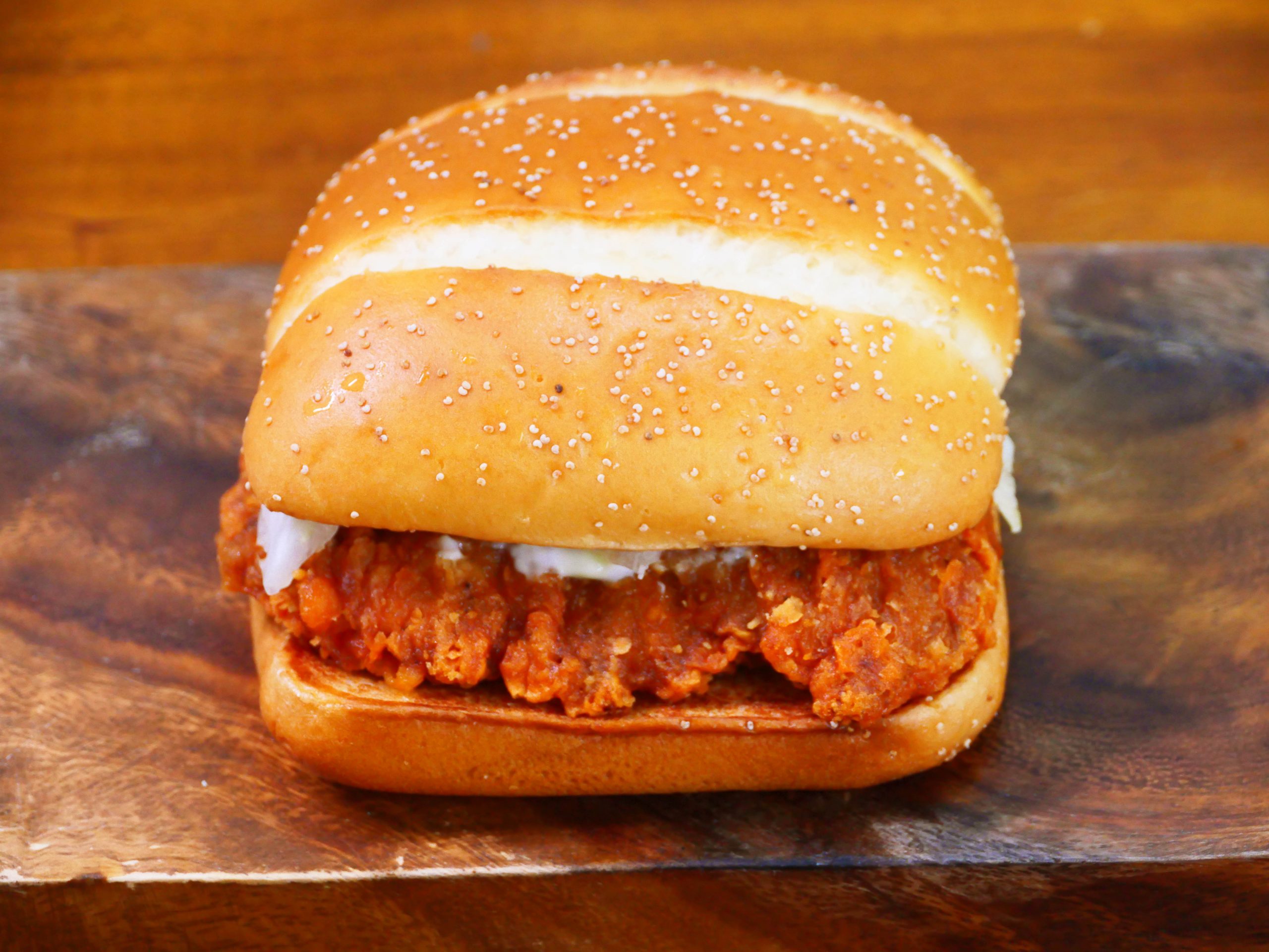 主役の一枚肉チキンパティがすこぶる良い仕事をしている。特に衣は素晴らしい。思ったよりも厚めの衣で、超クリスピーに仕上げられている。食べるとザクザク、いや、ガリガリともいえる心地よい振動が生まれ、それと同時にスパイシーな旨辛エキスが広がる。ガリガリガリガリはおいしさの響き。