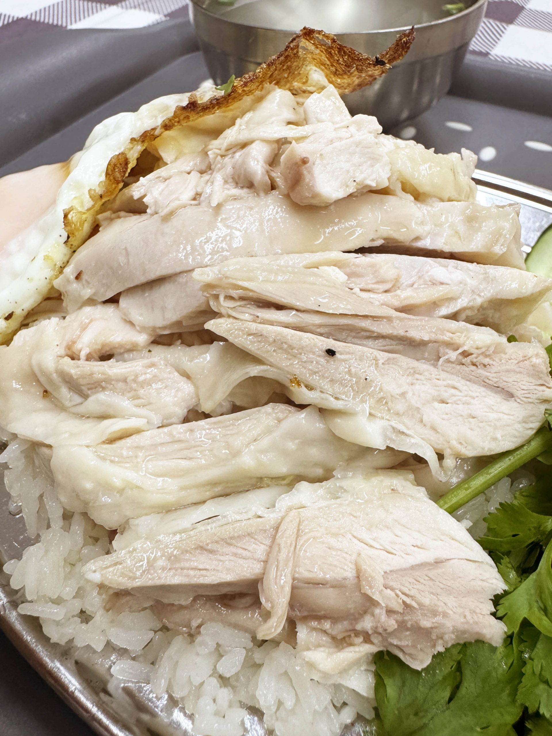 見るからに柔らかそうなチキン。カオマンガイ、食べる前の魅力として、やっぱりビジュアル的にチキンの柔らかいイメージは重要。もはや、食べる前から約束された「絶対においしいカオマンガイ」がそこにある。