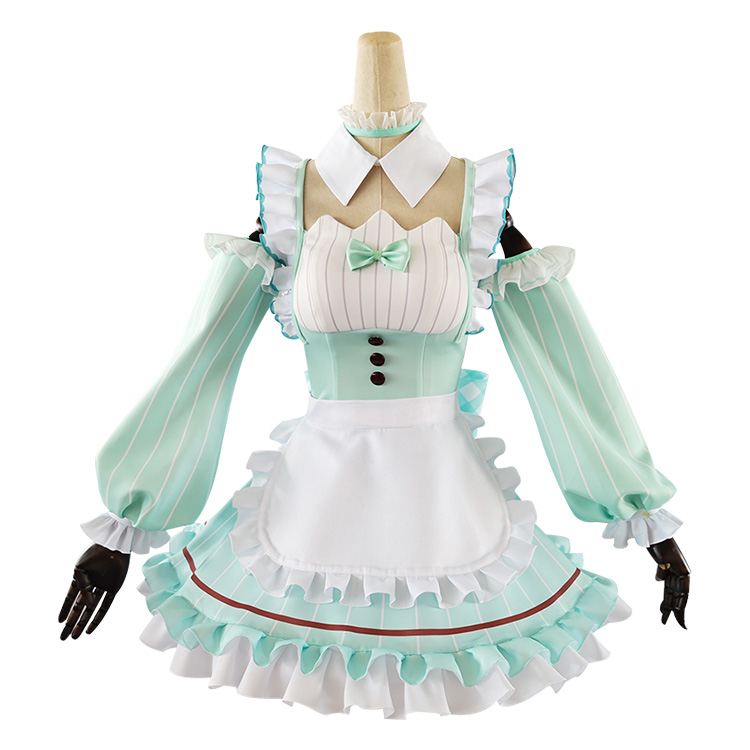 ワンピース、エプロン、髪飾り、靴下、手首飾りといったパーツで、ステージでも撮影でも注目間違いなし!