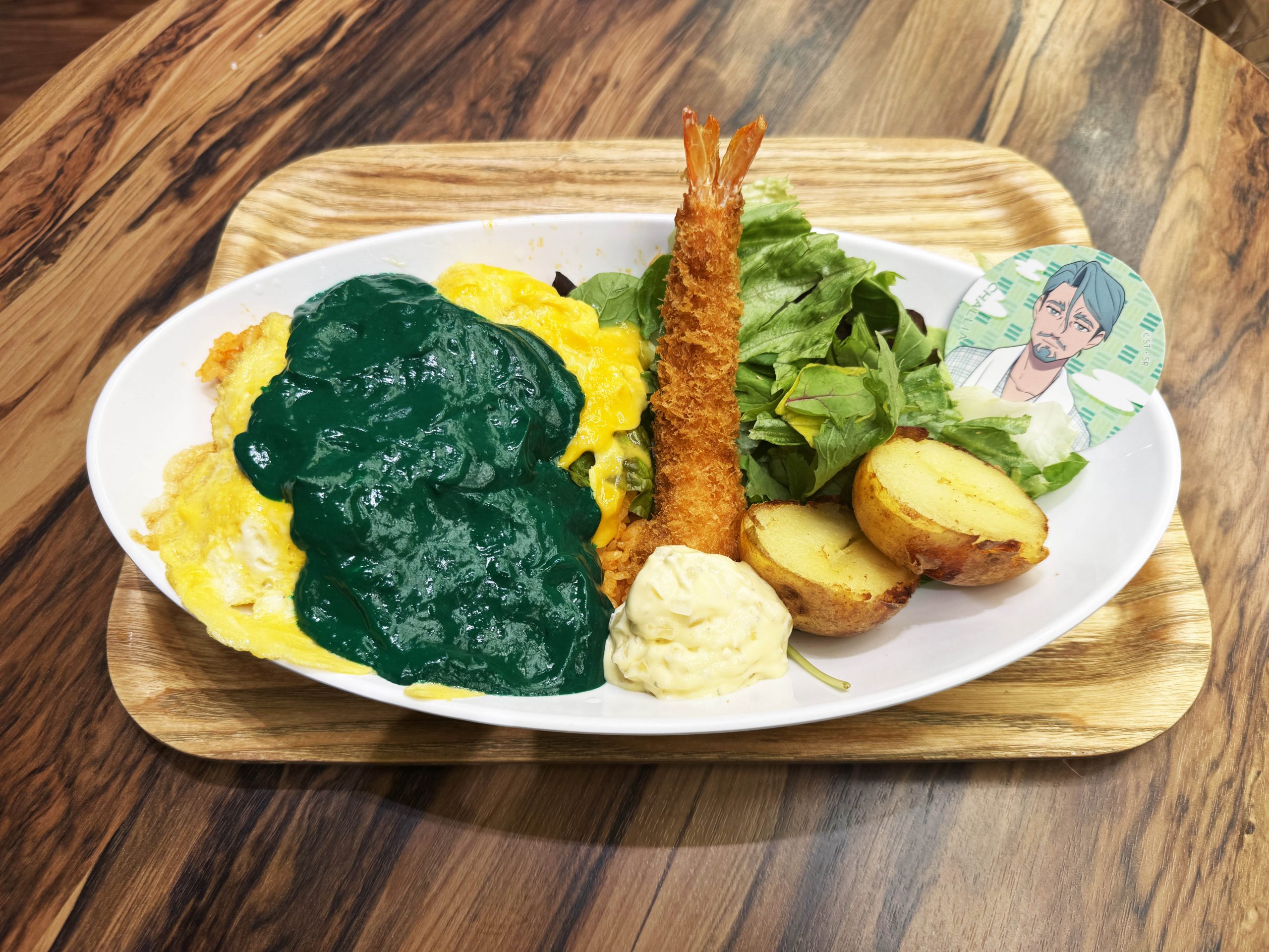 機動戦士ガンダムジークアクスの「シャリア・ブルのエビフライ木星プレート」を食べる