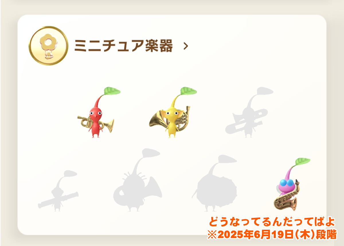 音楽祭イベントに合わせて出現中の限定デコピクミン“ミニチュア楽器”は全部で7種類。