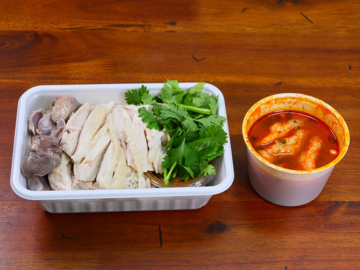 カオマンガイを食べまくる生活。今回は東京カオマンガイのカオマンガイを食べてみた。ウーバーイーツで木場店にオーダー。カオマンガイの肉マシ80グラム、鶏モツMIX、パクチー、トムヤムクンスープも追加したよ。