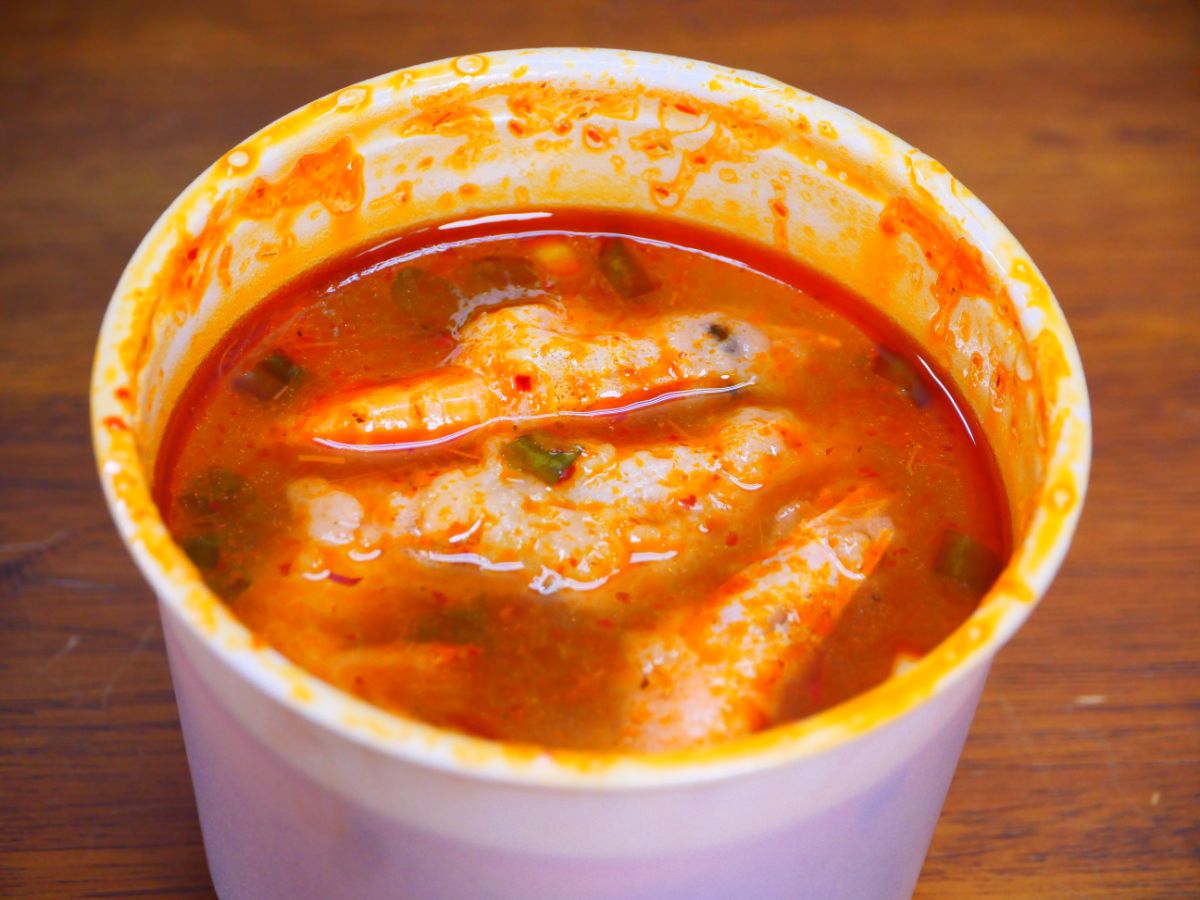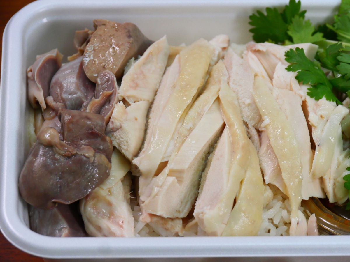 鶏肉はやや硬めで身がしっかりしたものだが、だからといって硬すぎるわけではない。タイ感を感じるカオマンガイが好きなので、イイ感じ。そして鶏モツ、なかなかの個性派。けっこう硬めで、ソースをあまり受け付けないタイプ。あくまで筆者の好みの問題だが、カオマンガイに鶏モツは奇抜すぎる気がした。