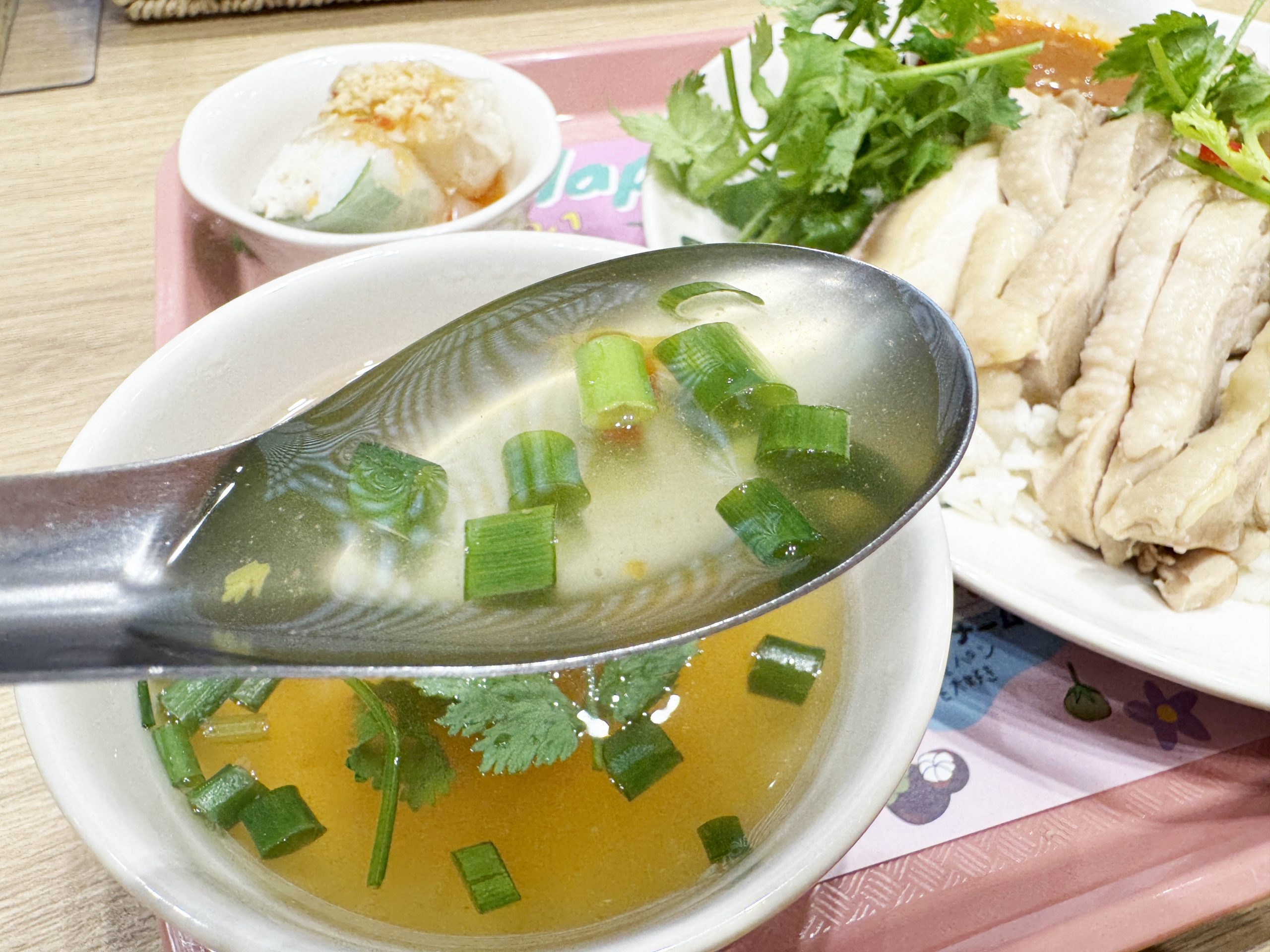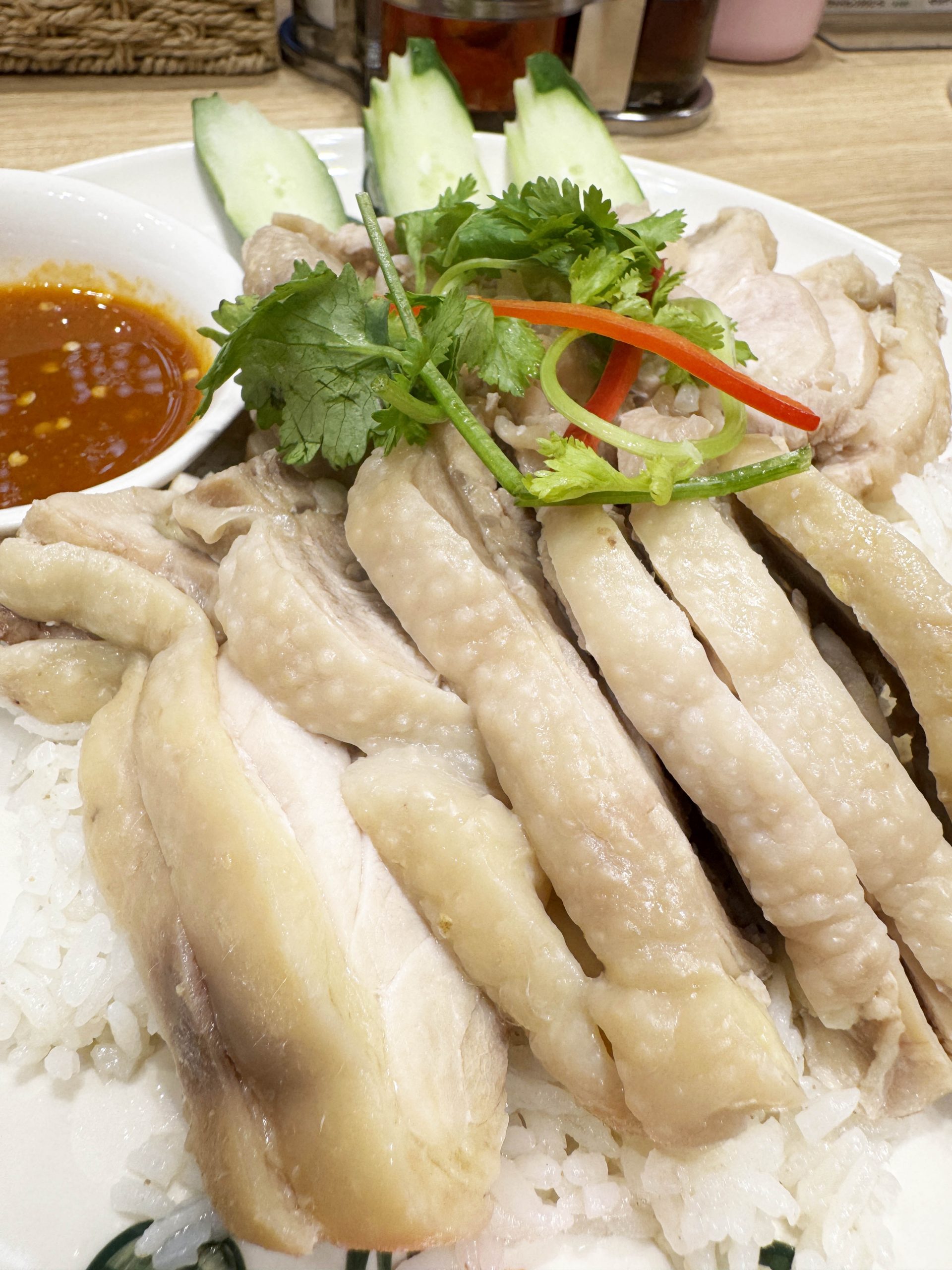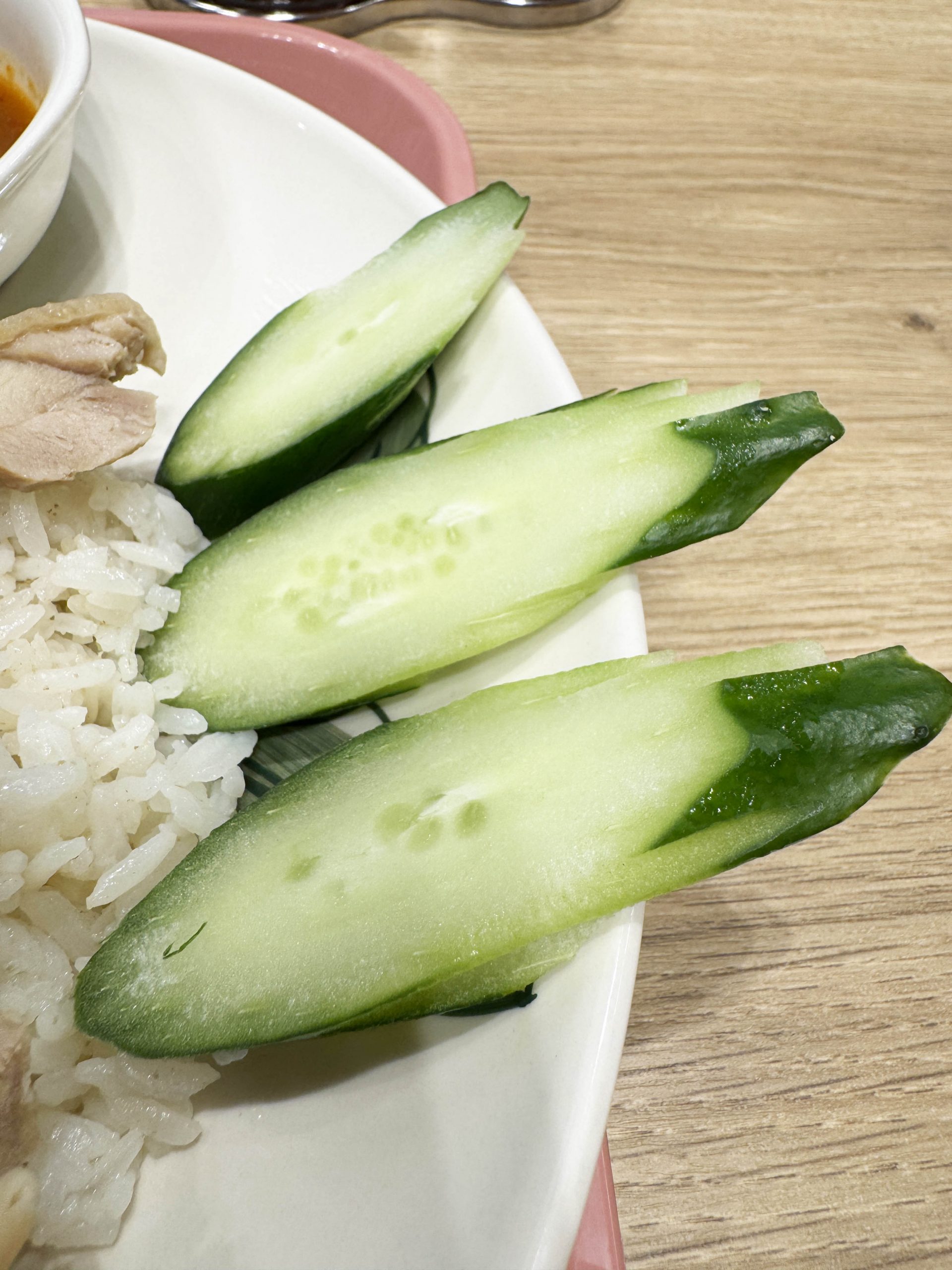 キュウリがしっかり3枚添えられているのが素敵。カオマンガイマニアになると、キュウリの枚数が3枚じゃないと「テキトーかっ!?」と思うことがあるらしい。この店のキュウリはしっかり3枚! 良きかも?
