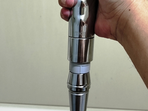 写真の現在ホースが付いているのは「ボリーナ アヴァンティ」で、記者は基本的にこれを日常として使用している。強弱の切り替えスイッチがあり、ボディーソープがなくてもファインバブルが皮脂類を洗い流してくれる。オールマイティ型と言っても良い。