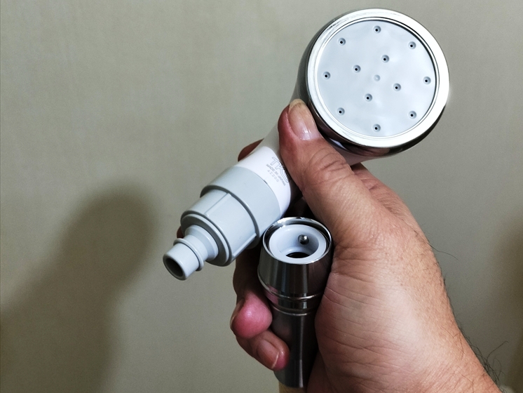 お湯を出してみると、ちょっと想像していたのとは異なるミスト状のお湯が出てきた。霧状を考えていたのだが、そういうわけではなく、どちらかというとミストサウナをつくるのではなく肌の水分量を増やし、保つことに特化しているようだ。よって、通常のシャワーヘッドを使用して、最後の仕上げにこれを使うという使用方法もありというわけだ。そういう観点からはゴシゴシさっぱりしたい男性よりも女性向けに感じる。