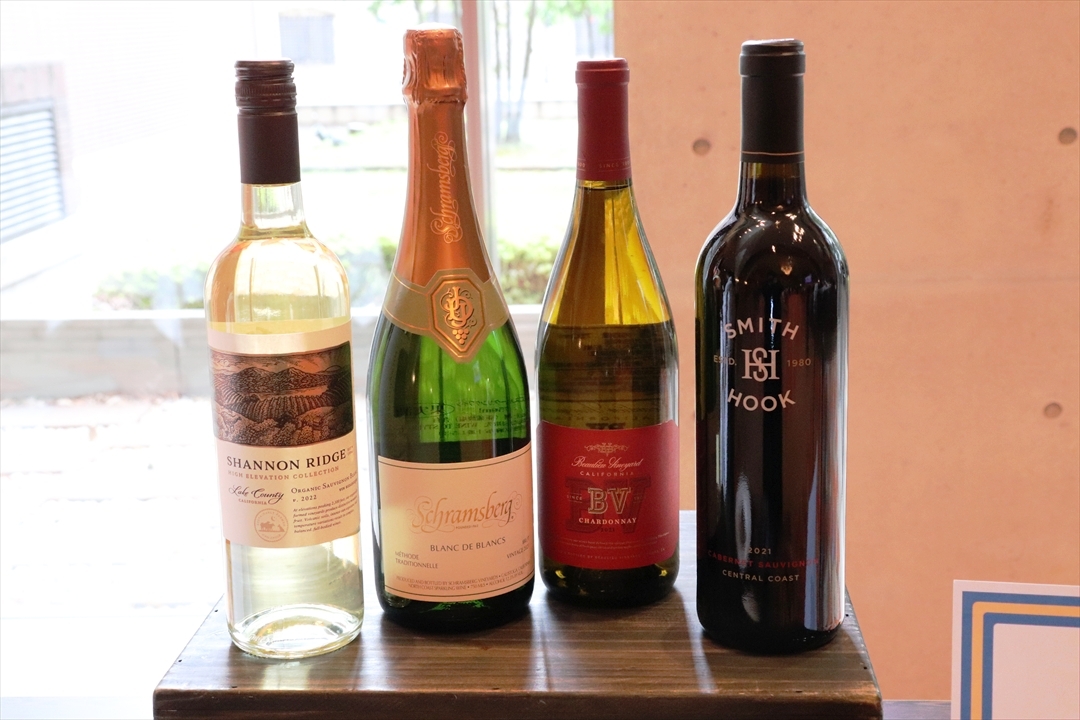 これらのメニューにはそれぞれ合うワインが選択されて提供された。昨今では米国産ワインは珍しいものではなく、比較的安価に美味しいものが飲めるのは知られている。欧米では食卓には超高級ワインではなく食卓ワインが常備され、常に飲んでいるイメージがあるが、日本でもワイン好きの中には安価な食卓ワインから美味しく自分にあったものを探すようなファンも見られる。カリフォルニア産ワインがどのようなカテゴリーに属するのかは定かではないが、少なくとも提供されたものはビンテージワインのような超高級品ではない、気軽に飲める美味しいワインであるだろうことは察しがついた。