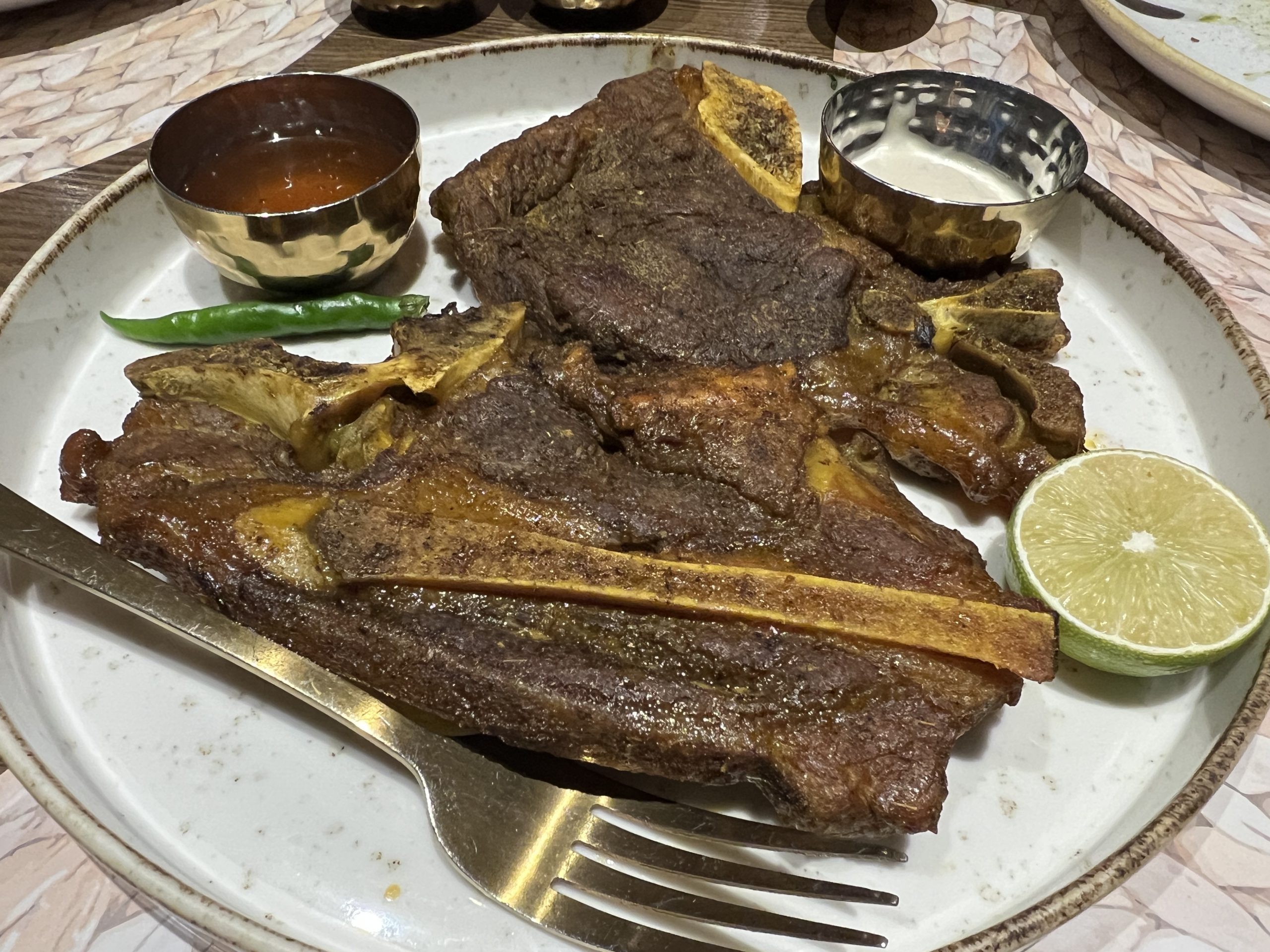 炭火で香ばしく焼かれた骨付き肉は、外はカリッとしつつも中は驚くほどジューシーで、この一皿だけでも訪れる価値があると評されています。添えられたライムを絞ればこちらもまた味変が可能ですし、ラクダ肉のいろんな味を試してみてはいかがでしょうか。