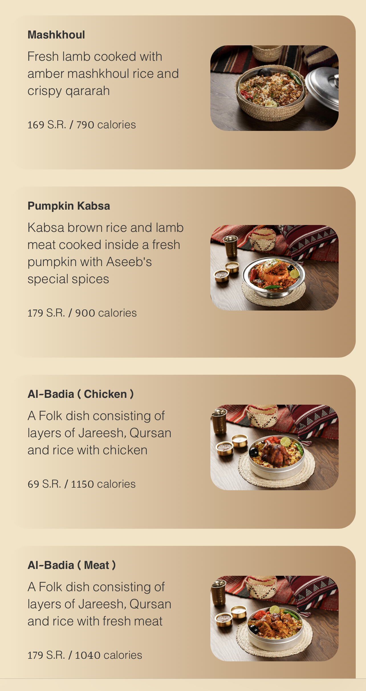 料理の味だけではなく、伝統工芸に彩られた空間、サウジ民謡が流れる空気、スタッフのあたたかい接客──すべてが「文化を味わう」体験として融合されているのがAseebレストランです。