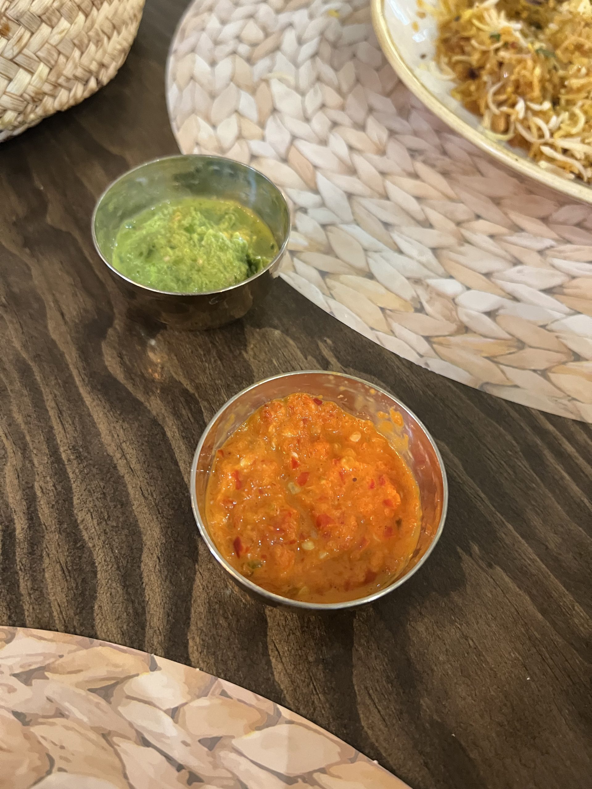 また、ナッツやドライフルーツをふんだんに使った「ミックスビリヤニ」は、彩りも鮮やかで香りも豊か。付け合わせの赤と緑のチリソースと合わせて食べると、甘味と辛味が交錯し、自分の好きな味を見つけ出すことができます。