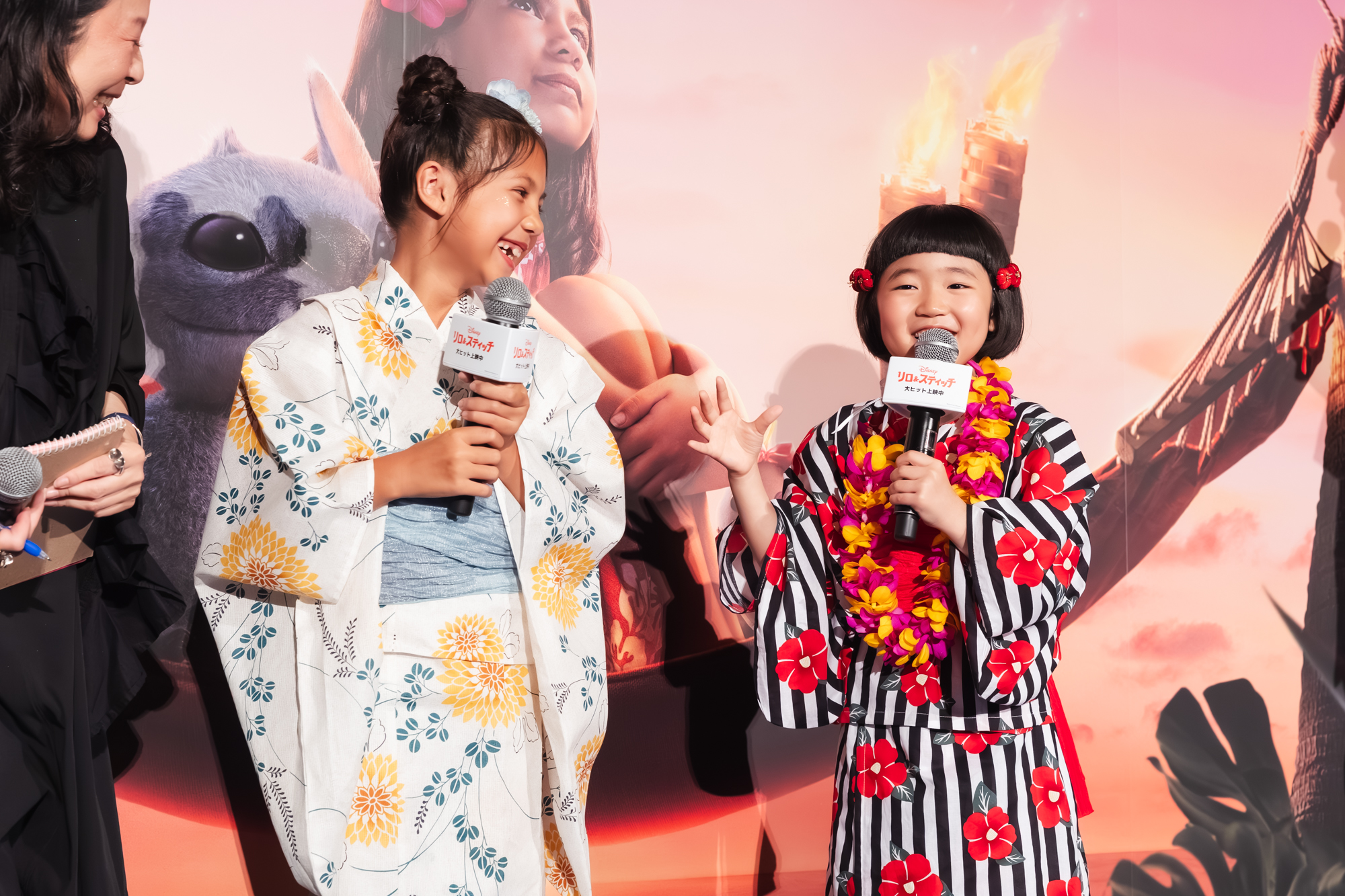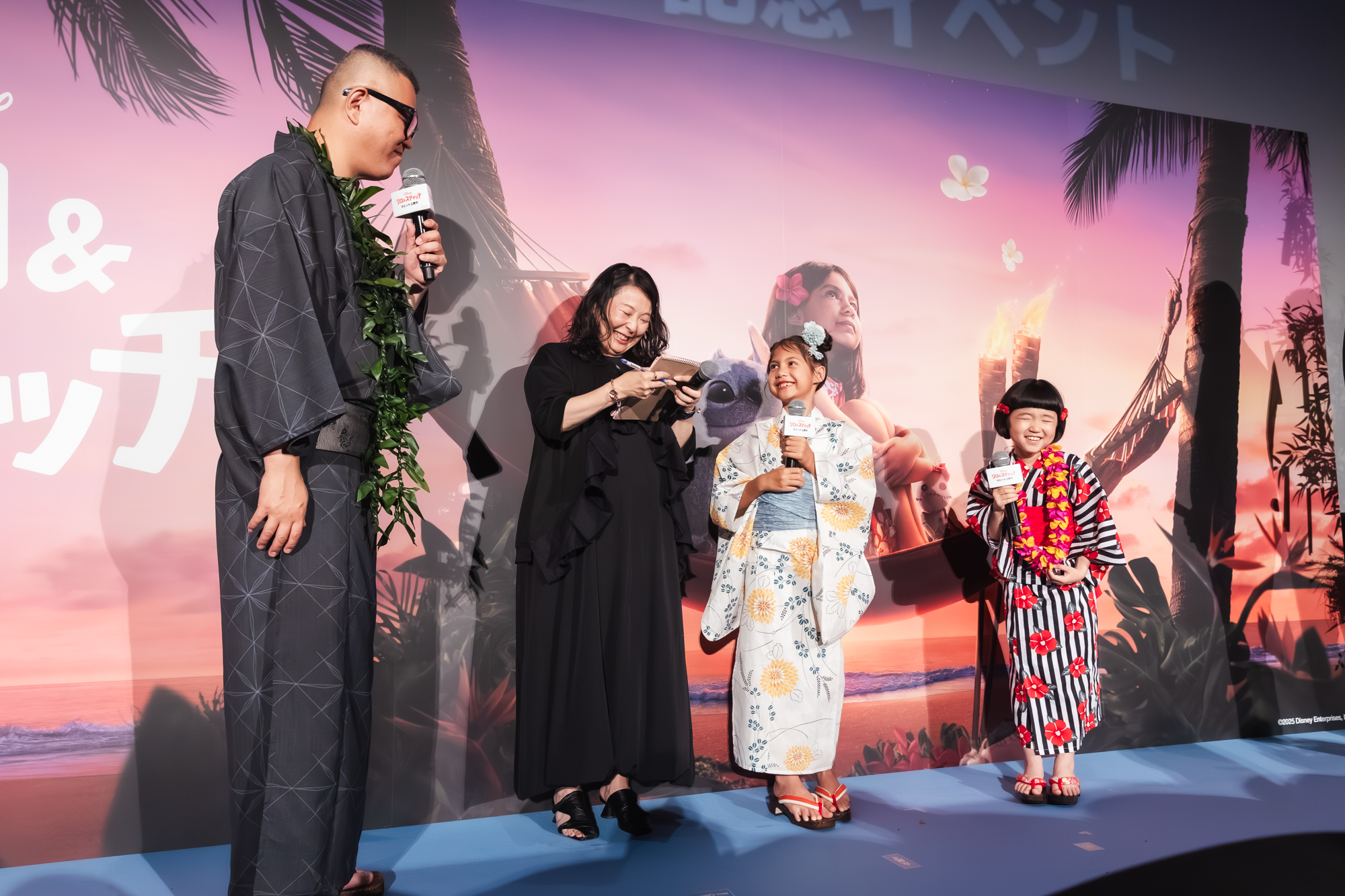 そんな“スティッチの日”を記念して実施された本イベントに、スティッチの親友リロ役・永尾柚乃さんと、スティッチの生みの親であるジャンバ博士役・長谷川忍(シソンヌ)さんが、一足早く夏を感じさせる浴衣姿で登壇。緊急来日したリロ役、マイア・ケアロハさんを迎え、映画『リロ&スティッチ』大ヒット御礼“スティッチの日”記念イベントを開催!