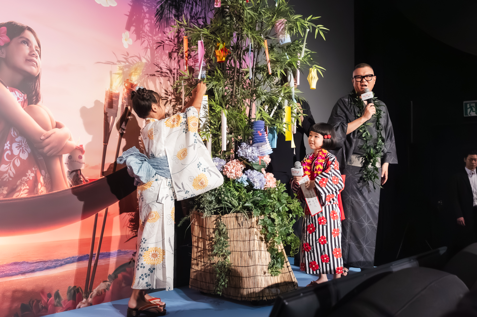 世界中で大ヒット公開中のディズニー映画、『リロ&スティッチ』のリロ役、マイア・ケアロハさんが、日本での大ヒットを祝して緊急来日! 永尾柚乃さん(リロ役日本版声優)、シソンヌ長谷川忍さん(ジャンバ役日本版声優)と一緒に七夕文化を初体験するイベントを行いました。