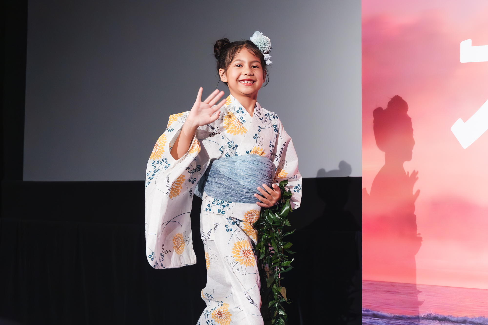 ハワイから緊急来日したリロ役本国キャストのマイア・ケアロハさんは、「日本に来られてとてもワクワクしています。きっとこの映画を大好きになってくれると思うし、“オハナ<家族>”の大切さを感じられる映画になっています。きっと泣いてしまう人もいると思います。みなさんのことが大好きです!」と日本のファンに向けて挨拶しました。