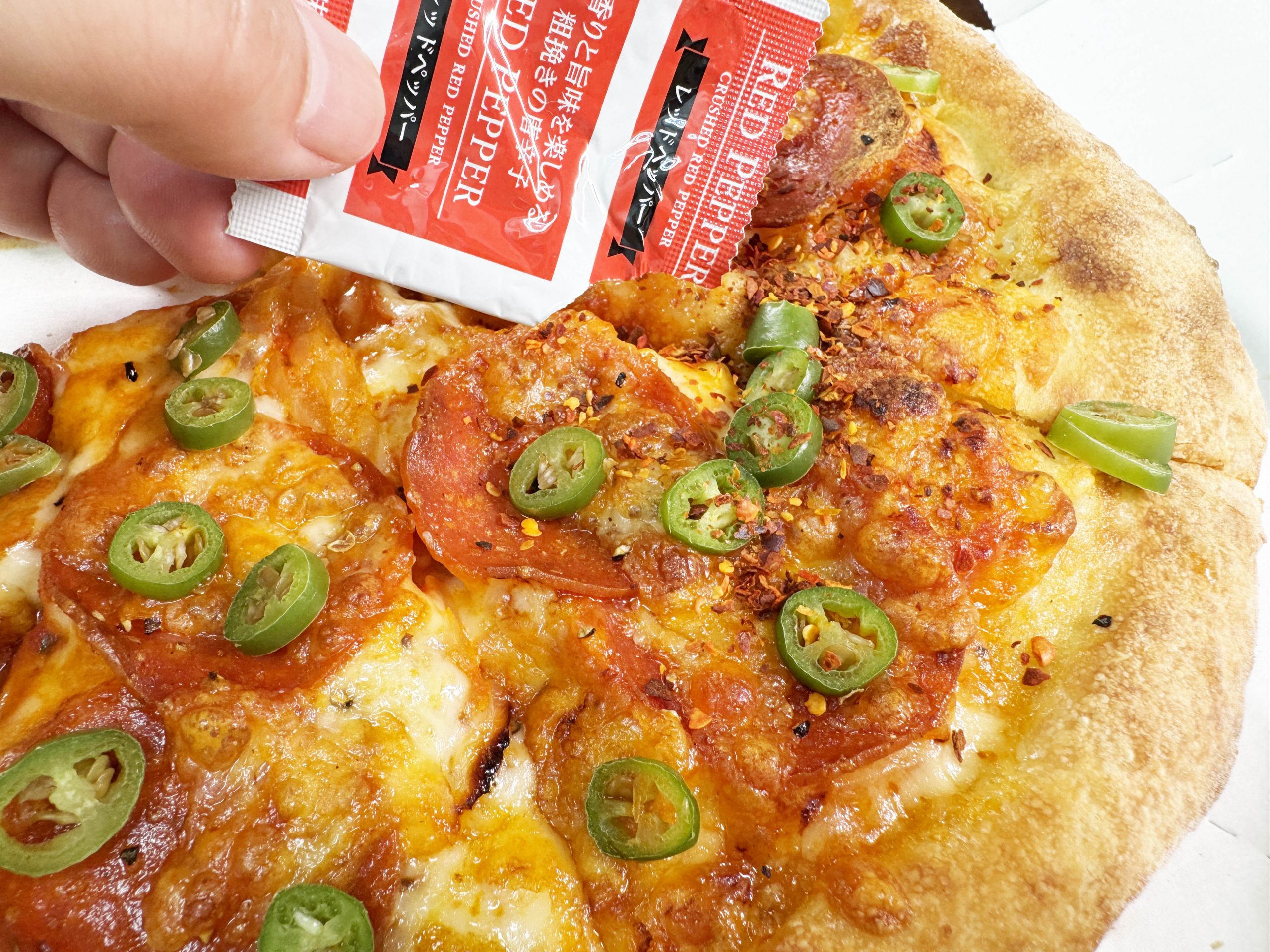 しかもこの激辛ピザ、より激辛タイプの「大辛2倍ピザーラセラーノペッパー」もあるようだ。ということで、実際にオーダーして食べてみた。