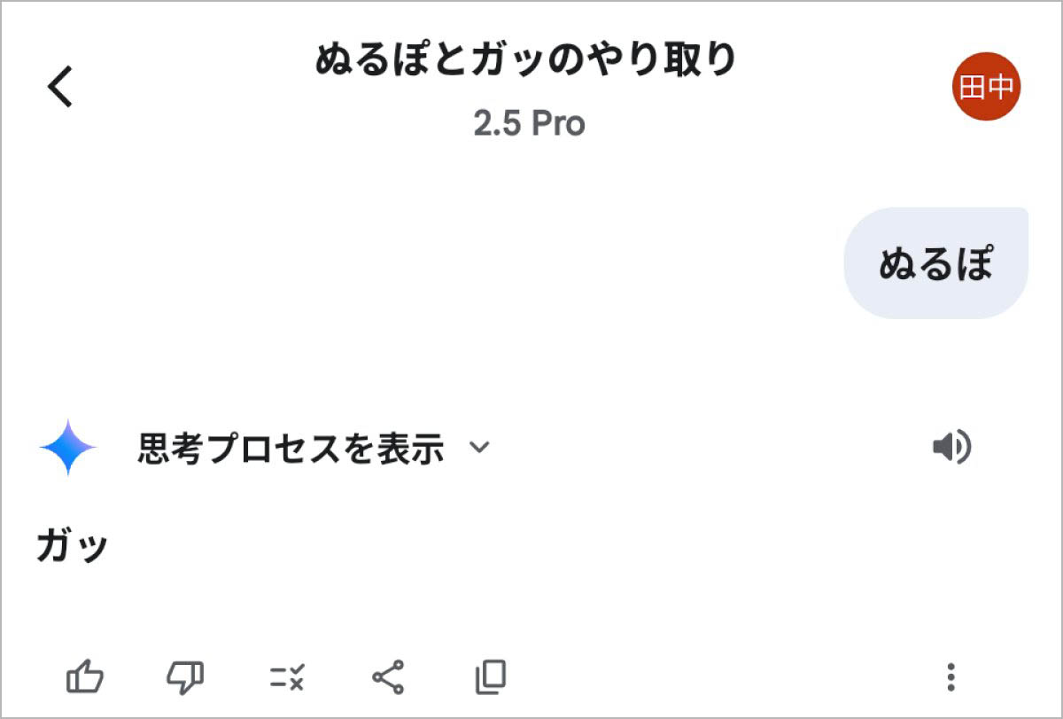 ちなみに、AIサービスのGoogle Geminiで「ぬるぽ」と記入すると、しっかりと「ガッ」と返答してくれる。試しに筆者もやってみたところ、確かに「ガッ」と返答してくれた。気になる人は、実際に試してみるとよいかもしれない。
