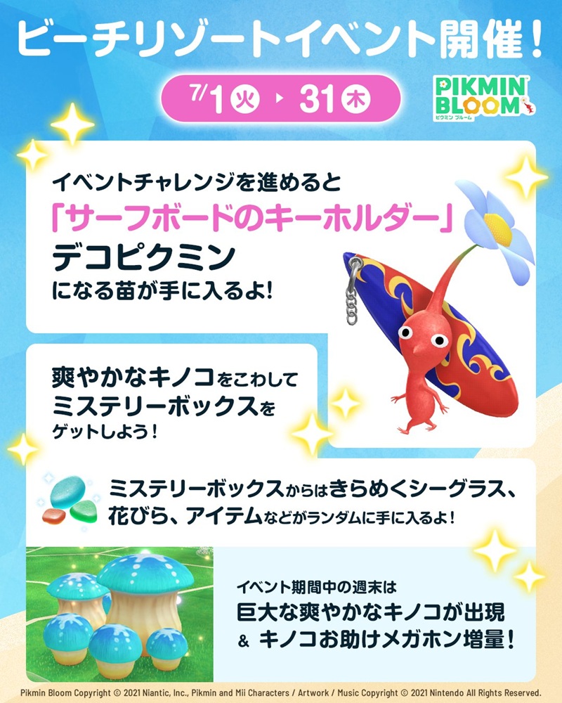 そんななか、『ピクミン ブルーム』では明日(7/1)よりビーチリゾートイベントが始まる。