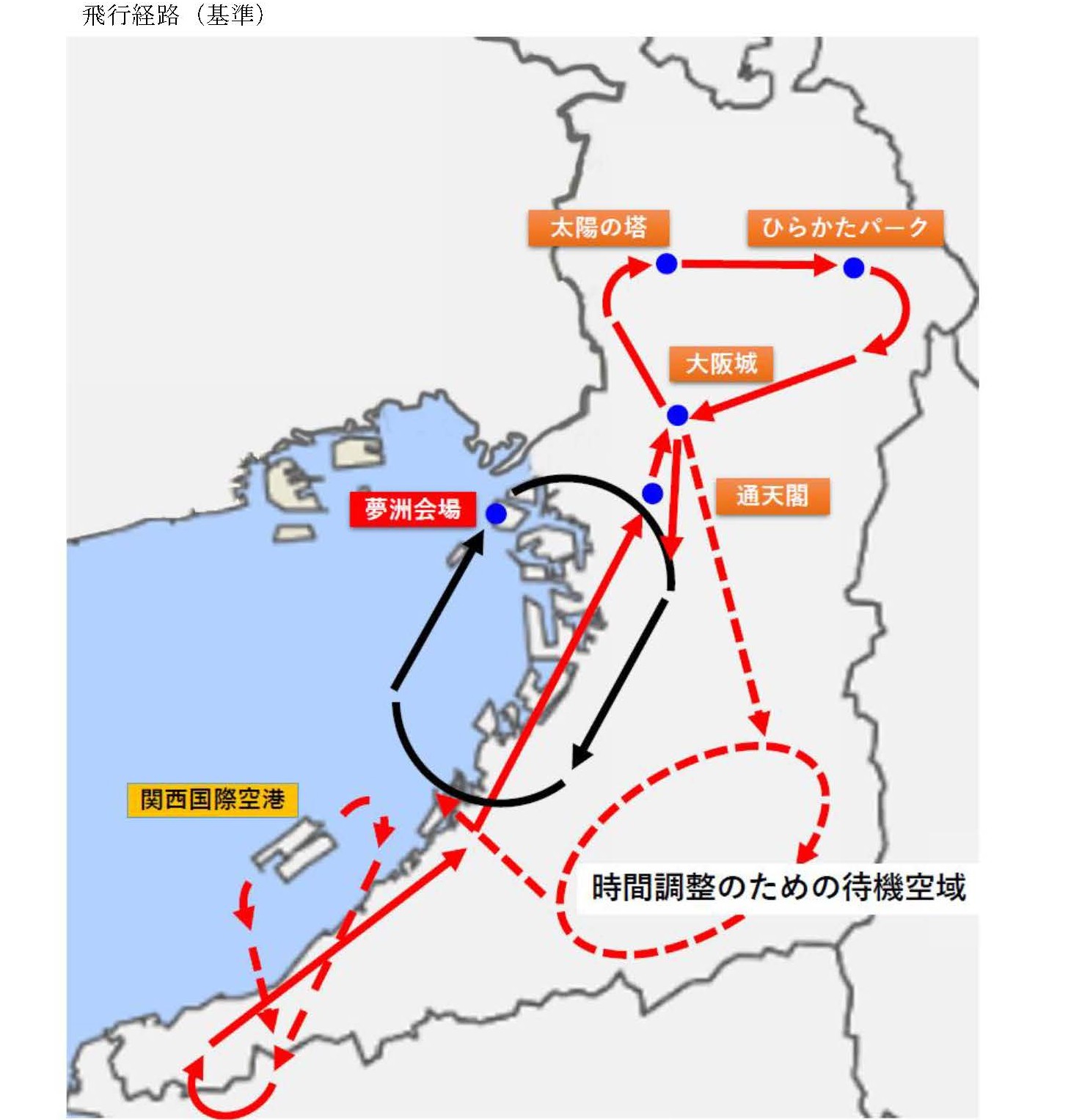 12:00~12:15ごろ 夢洲会場上空で数課目展示飛行
