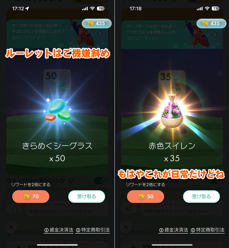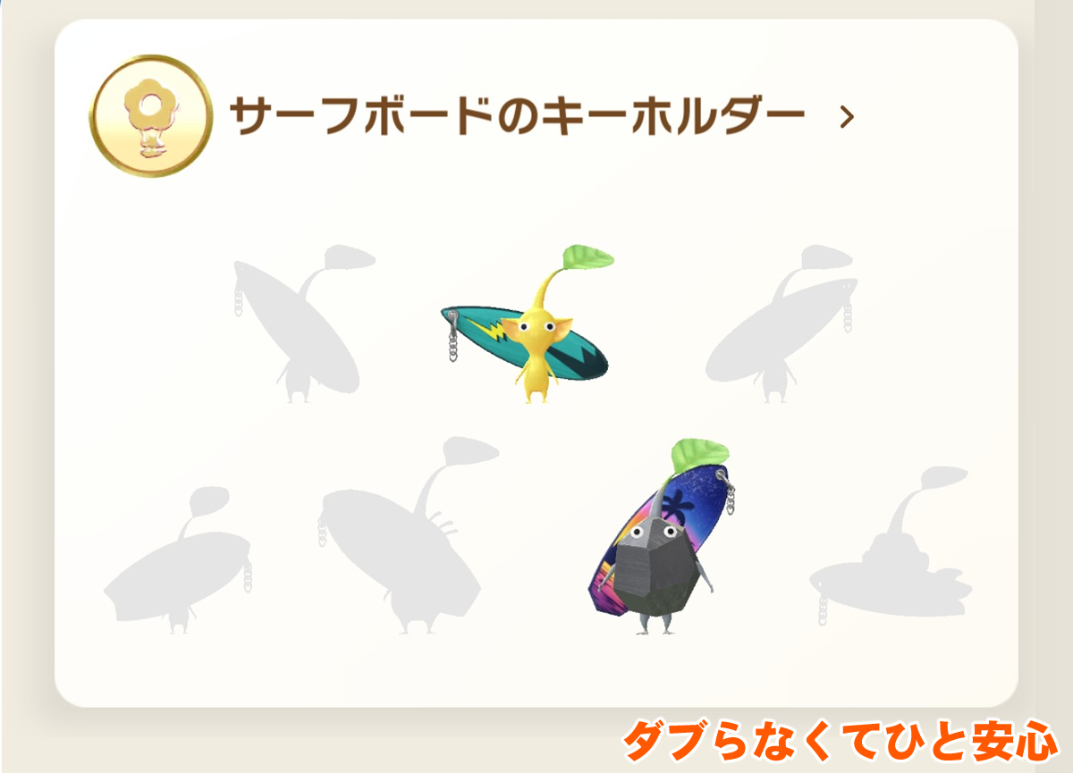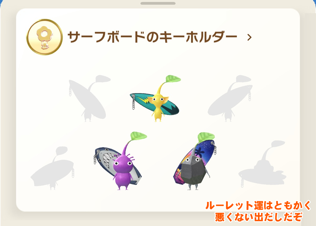 そしてここ数ヵ月ルーレットに恵まれない筆者の“サーフボードのキーホルダー”デコピクミン集めの現状をお届け。