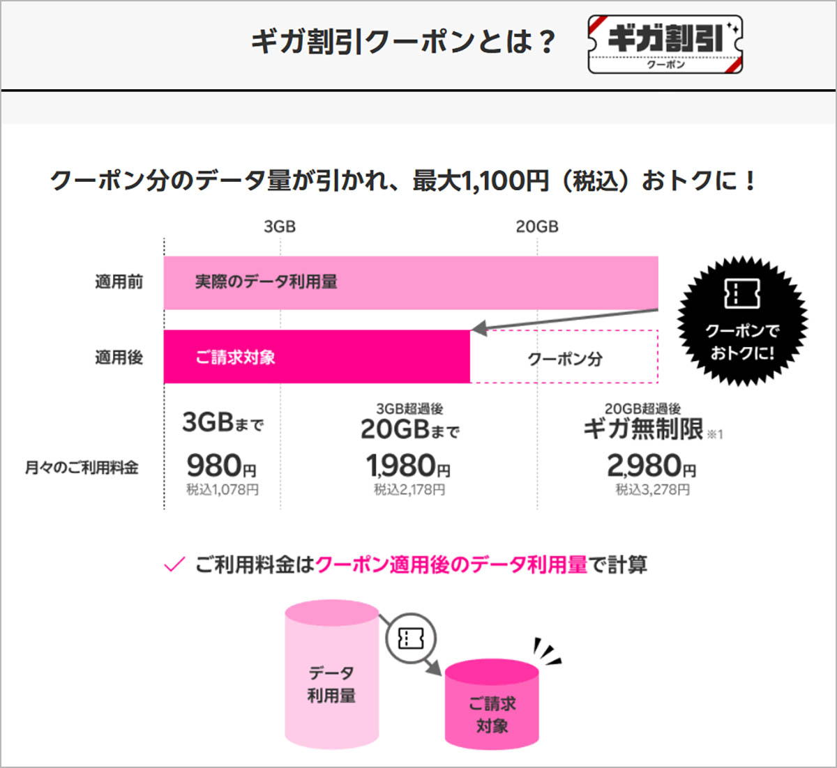 「ギガ割引クーポン」が毎月もらえます✨