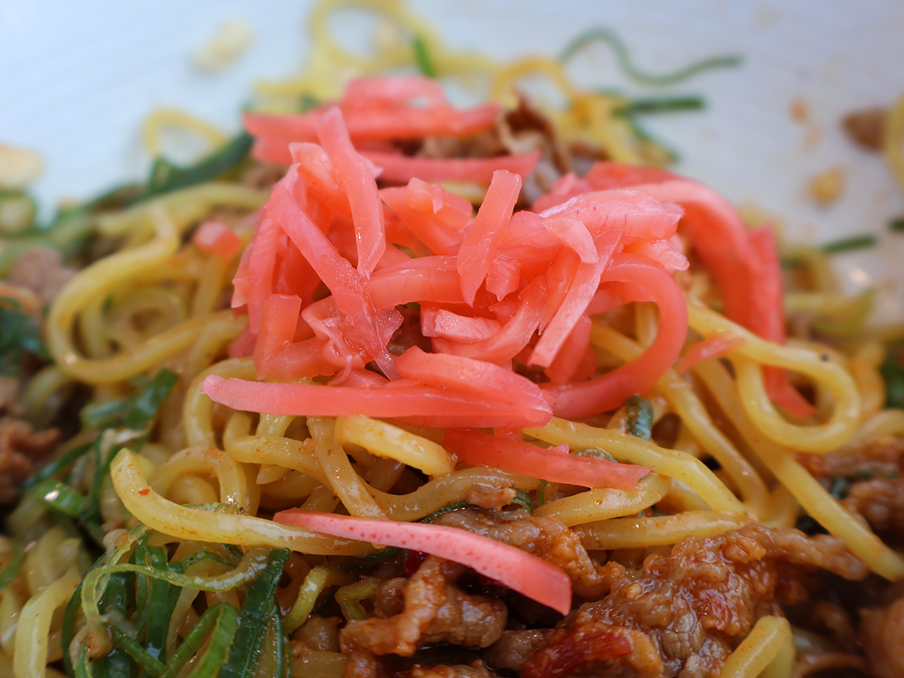 最後はここに卓上の紅生姜も投入。甘味、辛味、酸味のバランスが整い、シャキシャキの食感もアクセントになり、個人的にはこれが完成形かなと。牛肉がたっぷり入ってるし、提供時間は早いし、これで700円台で食べられるのなら結構アリなんじゃないでしょうか……!