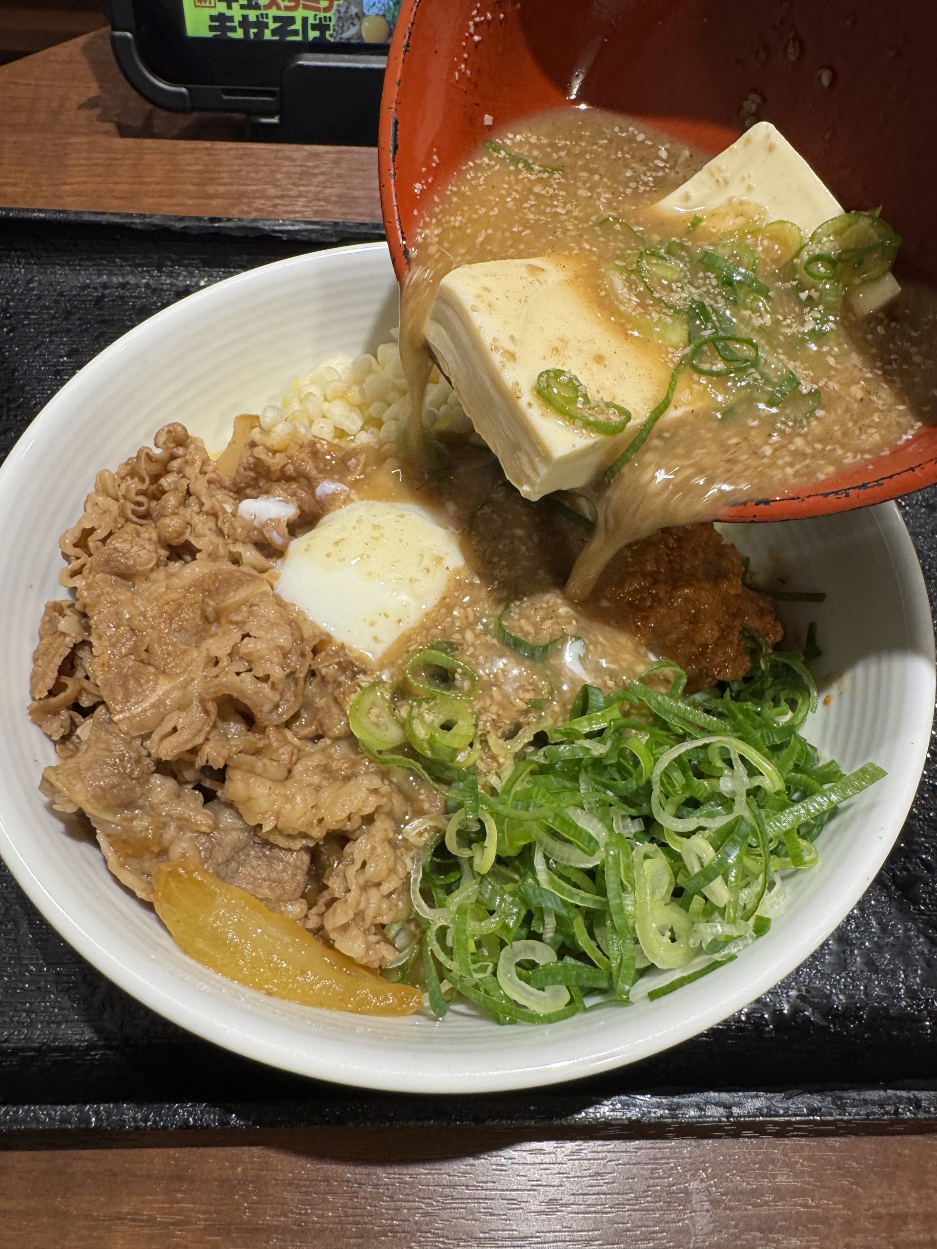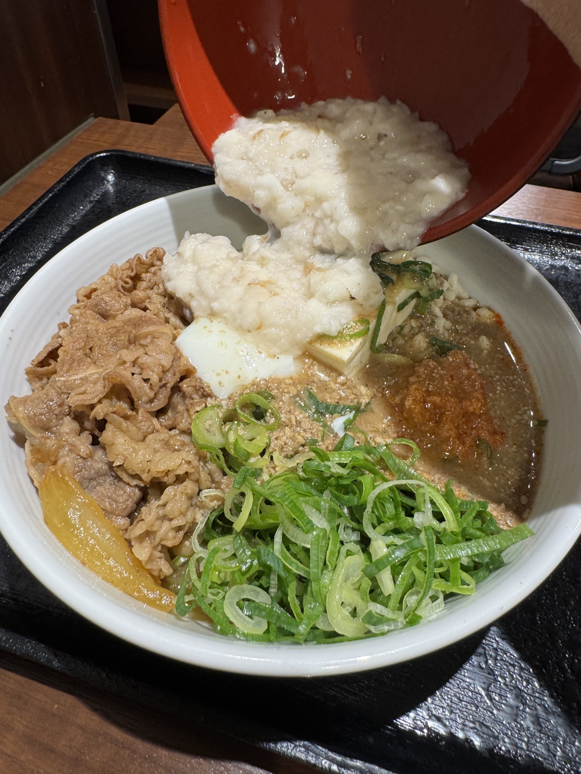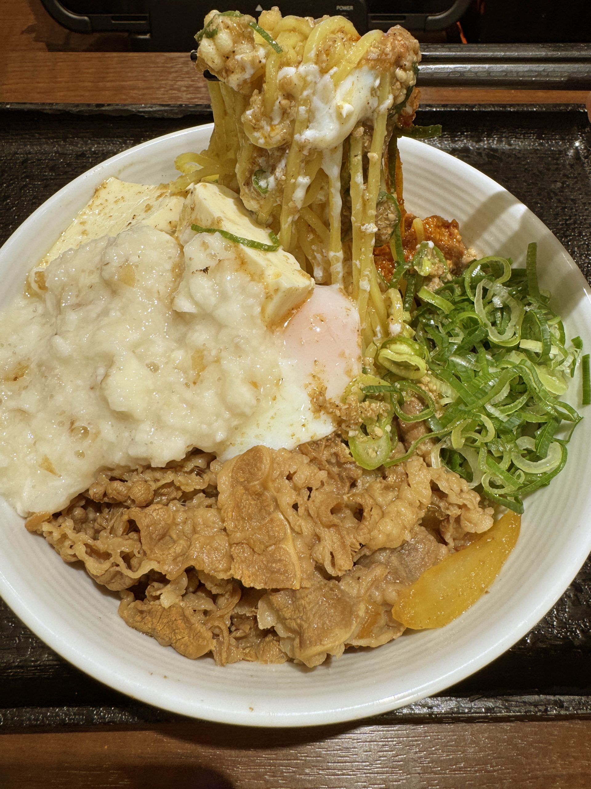 信じてもらえないかもしれないけど、吉野家の麺料理「牛玉スタミナまぜそば」に冷汁をぶっかけることで、最強の冷やしラーメンにメガ進化。涼しみ、旨味、芳醇、コク、すべてにおいてパーフェクトな麺料理が爆誕する。さらにトロロもプラスすると神域レベルのおいしさに昇華。ウマスギィイイイイイィ! pic.twitter.com/8xqG5DYjjl