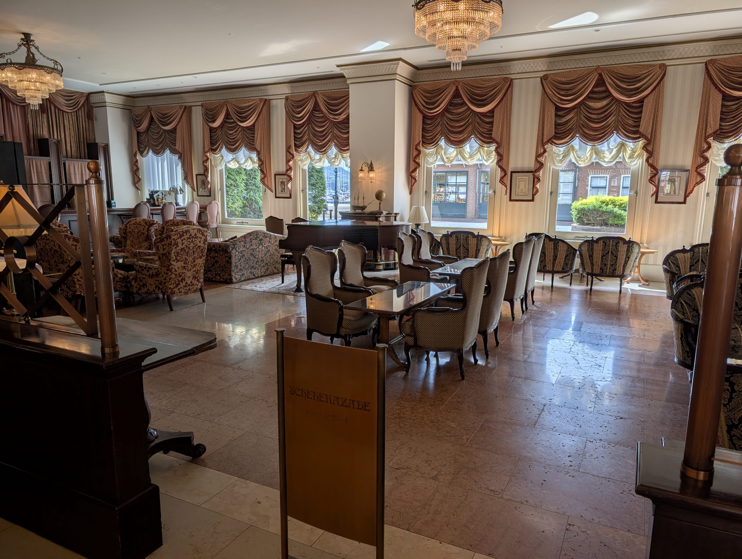 取材二日目は、滞在先の「ホテルヨーロッパ」の朝食でスタートしました。ここ「アンカーズラウンジ」は、ホテルヨーロッパの運河を臨む、花と音楽に囲まれた開放的なティーラウンジです。開放的な空間でホテルメイドの朝食ビュッフェやデザートなどをいただけます。