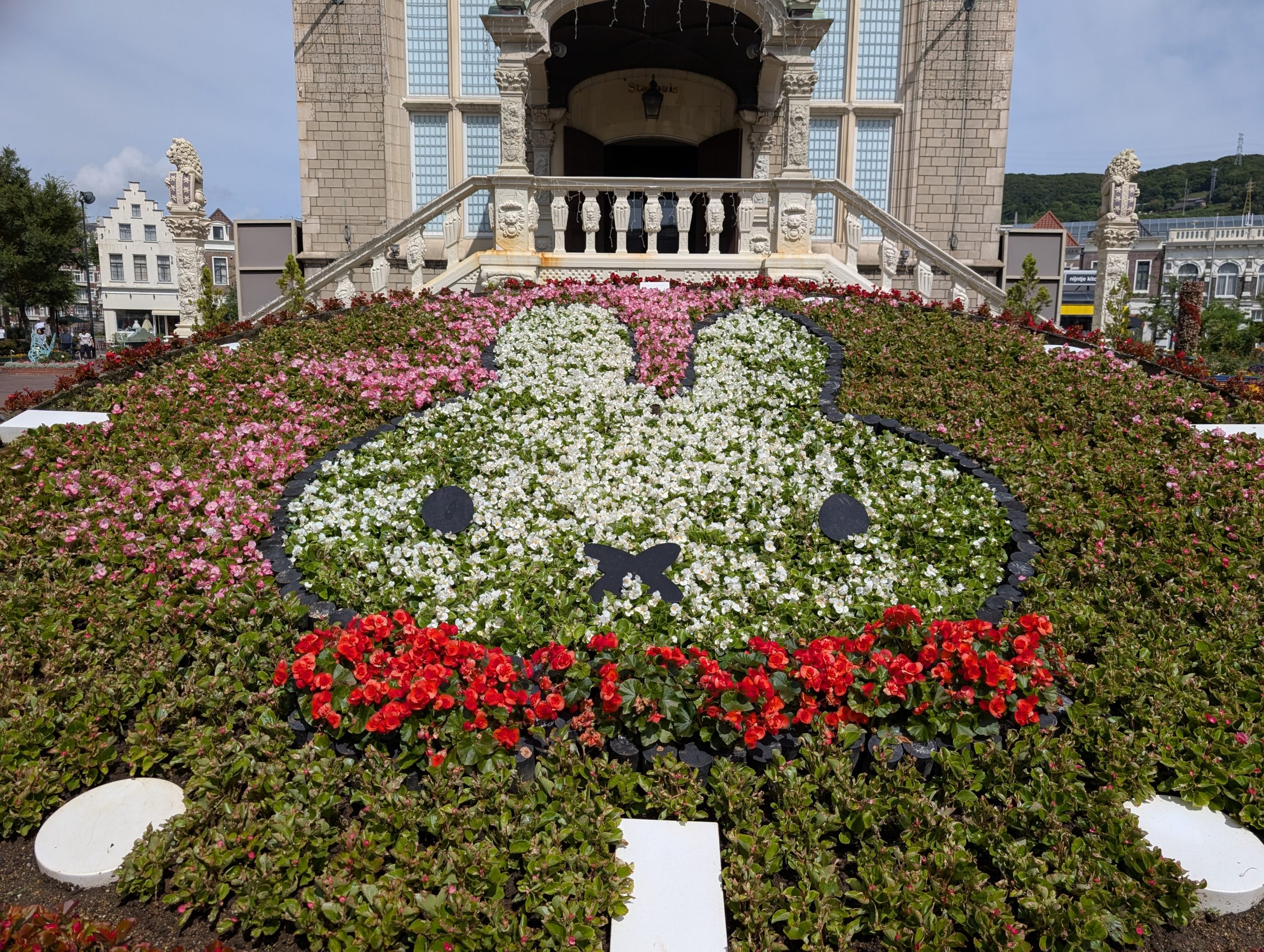 朝食を終え、パークに出ます。アムステルダムシティには、ミッフィーの花壇がありました。夜はここでプロジェクションマッピングも楽しめます。パーク内を散策しながら目的地へ向かいます。新エリアの「ミッフィー・ワンダースクエア」はすぐ近く!