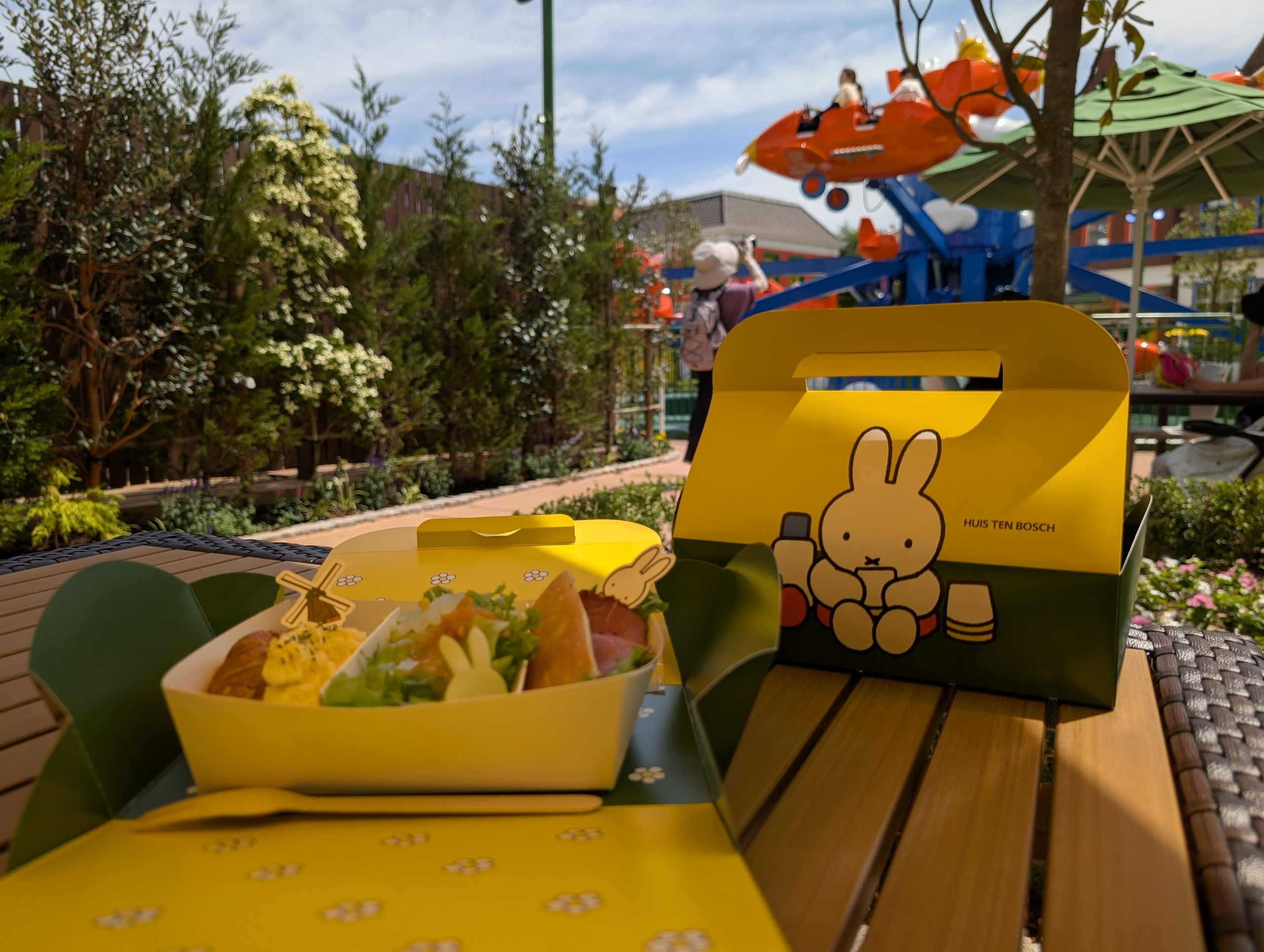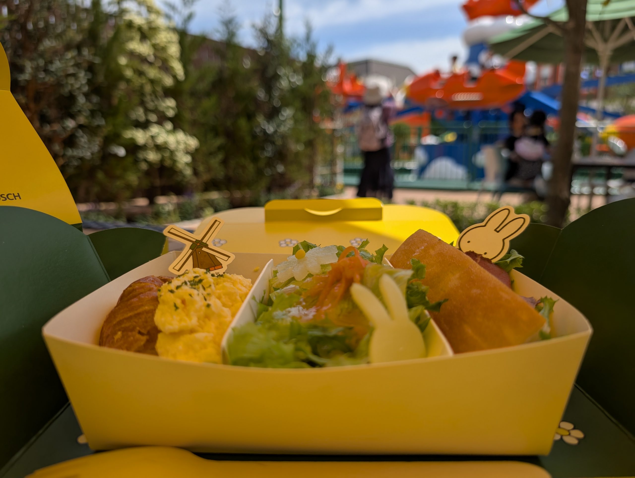 前日はレストランにお邪魔しましたが、新エリアにはテイクアウト専門店の「ホリデー・ピクニックカフェ」もあります。オリジナルボックスのサンドイッチを近くのテラスで頬張ったり、かわいいクレープを片手に、さながら気分はミッフィーと過ごす休日のピクニックと言ったところです。