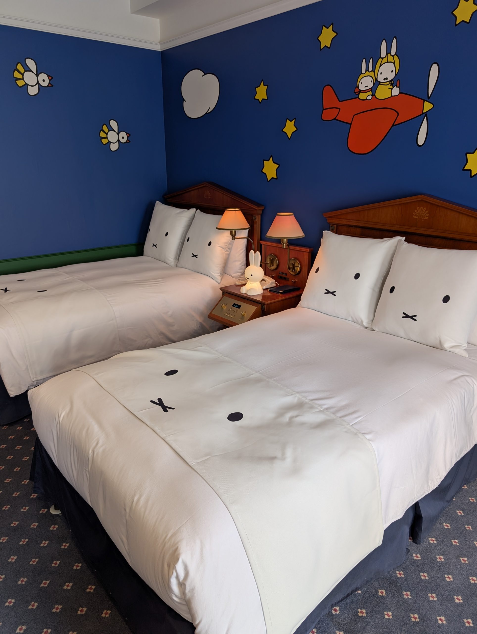 また、昨日に続いてミッフィールームも取材しました。昨日とはタイプの異なる客室で、ハウステンボスオリジナルの家具やぬいぐるみ、グッズなど、ミッフィーの世界観に包まれる特別なお部屋。パーク内のホテルアムステルダムにあり、新エリアのすぐそば。寝ても覚めてもミッフィーの世界が広がります。泊まれる方がうらやましい!