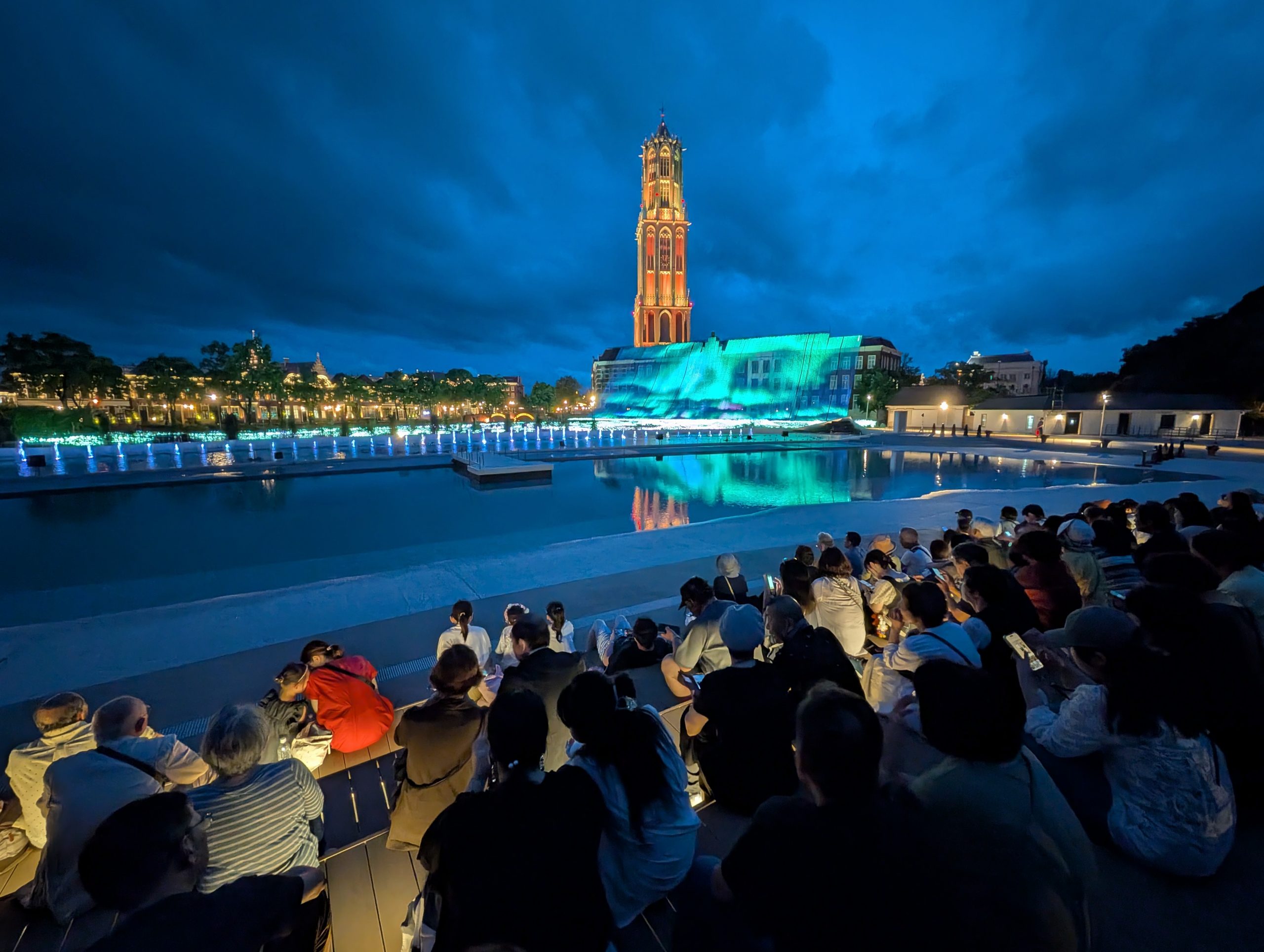 そして20時10分、人気のナイトショー「シャワー・オブ・ライツ Shower of Lights」を鑑賞しました。日本最大級の音楽噴水ショーとサーチライトが彩る光絶景に、毎夜花火が打ち上がる新しいナイトショーです。