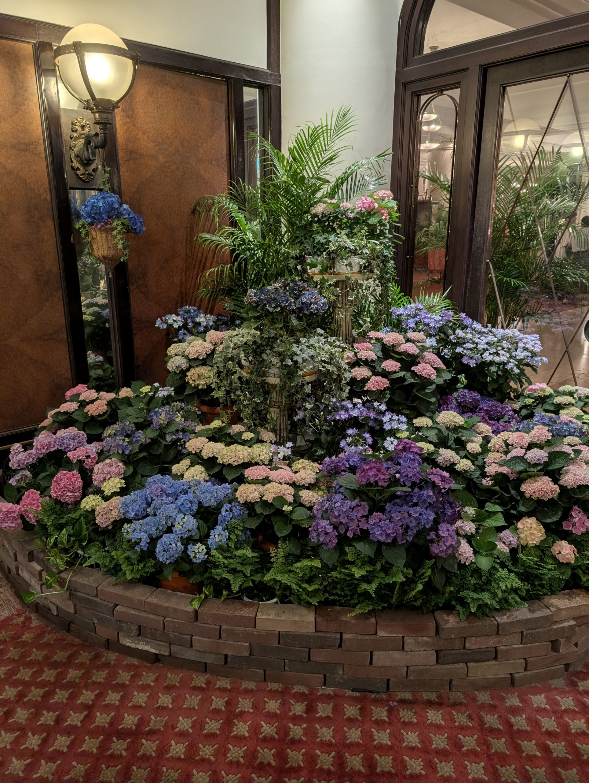 取材時は6月中旬で、あじさいの季節でした。滞在先のホテルヨーロッパにもロビーにたくさんあじさいが飾られ、素敵な香りに包まれていました。壮麗な美術館であるパレスハウステンボスへ向かう道にもたくさん咲いており、多くの方がそこでもあじさいの写真を撮っていました。