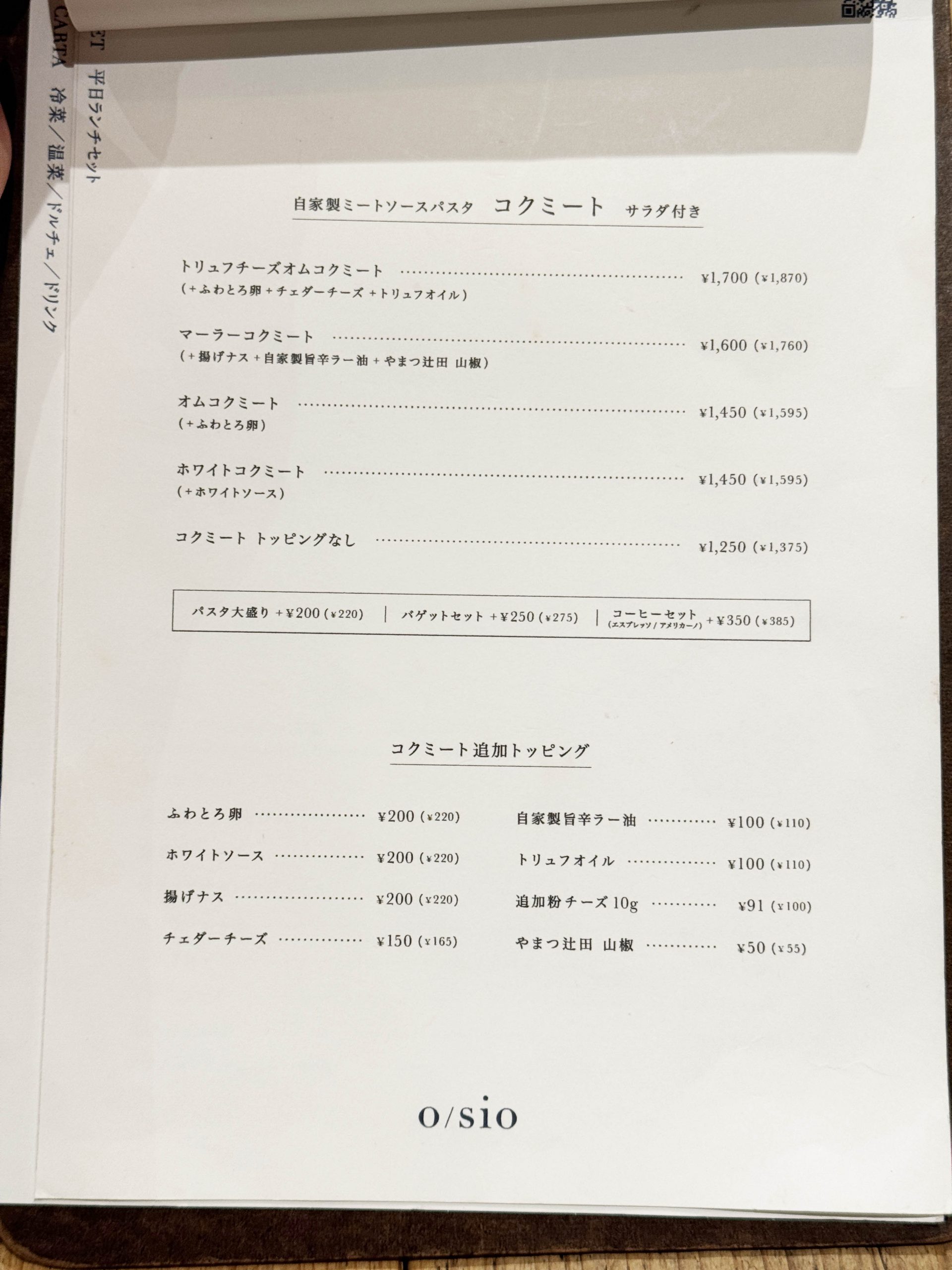 o/sioの自家製ミートソースパスタ「コクミート」が名物