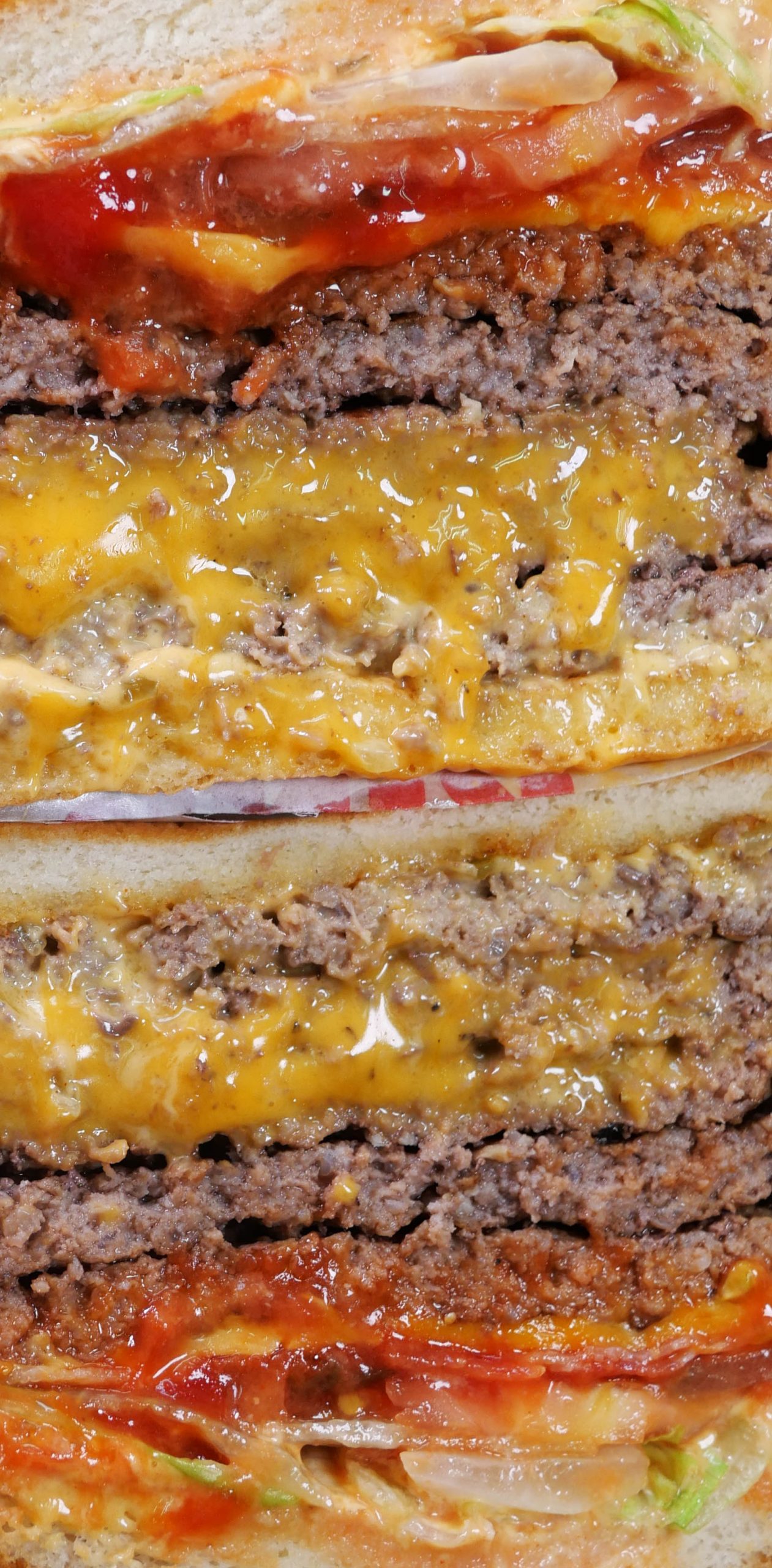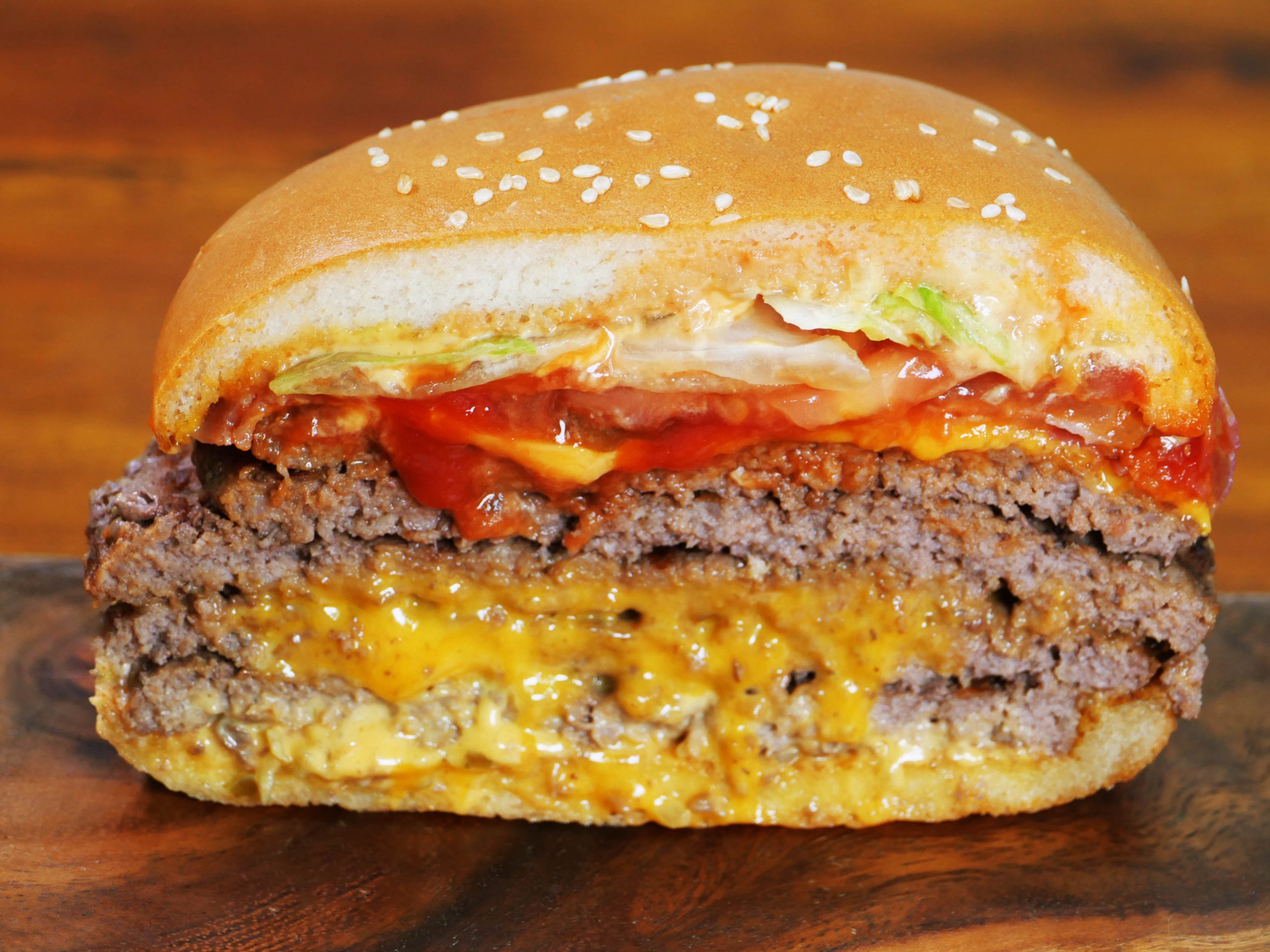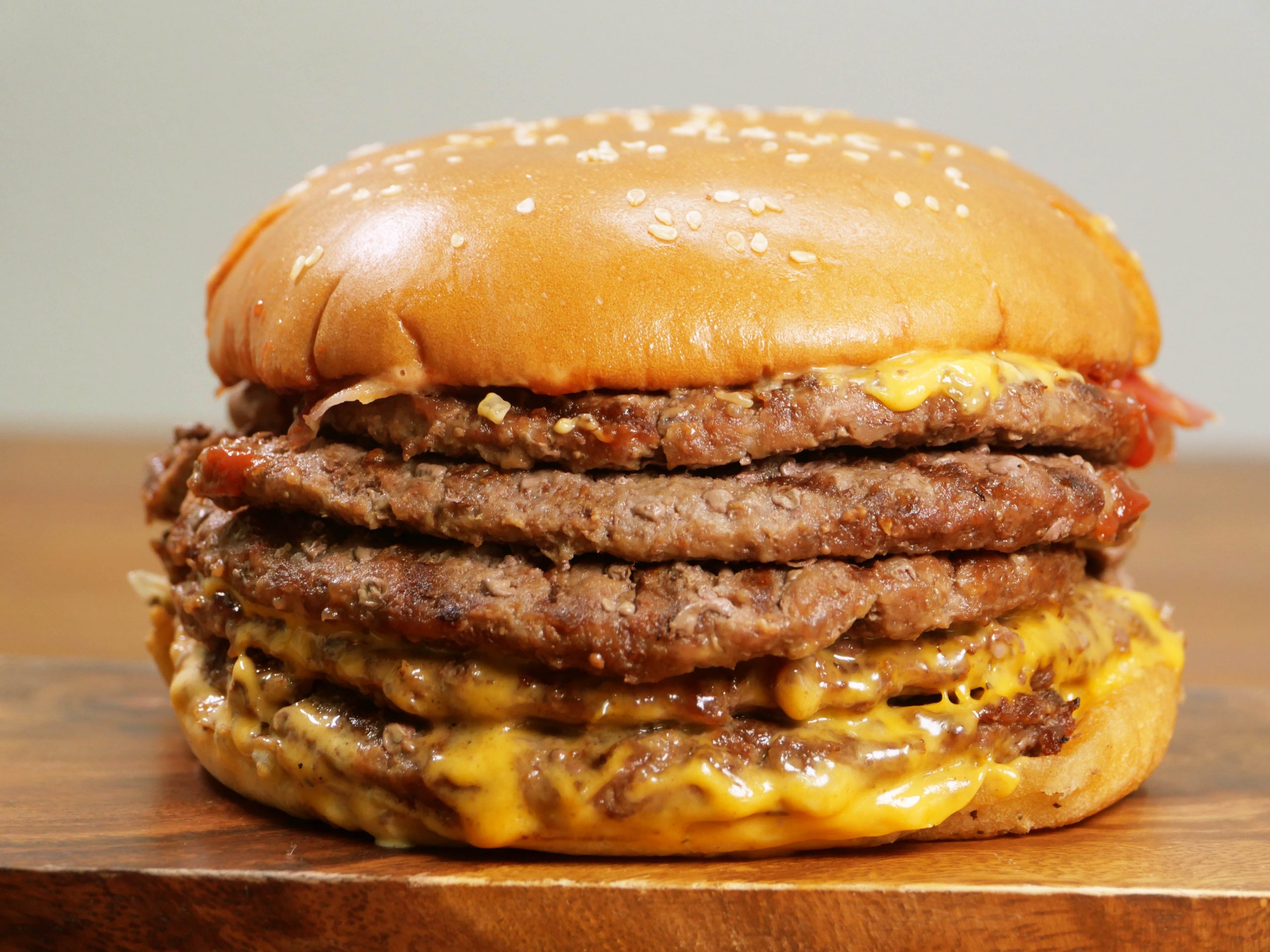 お相撲さんは、体力が資本。体力はご飯が資本。たくさん食べて大きくならないといけない!? だったらベビーボディーバーガーは間違いないよね。だってこれ、ビーフパティ5枚、ベーコン4枚、チェダーチーズ4枚、そしてヤサイガッツリ!! どう考えてもエネルギーの塊。1876キロカロリーもあるらしい。たまんねーなァ! オイ!
