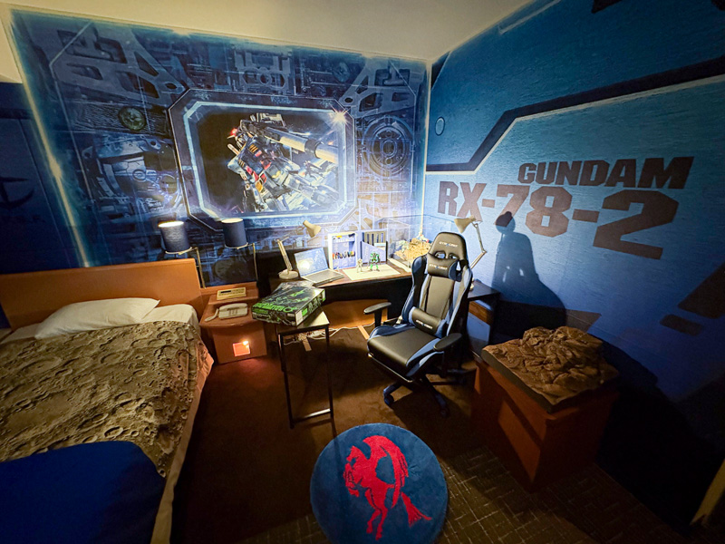 今回のコラボでは、「MG 1/100 RX-78-2 ガンダム Ver.3.0」をモチーフに、ガンプラ制作に没頭できるコラボルーム「“MG RX-78-2 GUNDAM Ver.3.0” ROOM」が下記の3室限定でオープン。