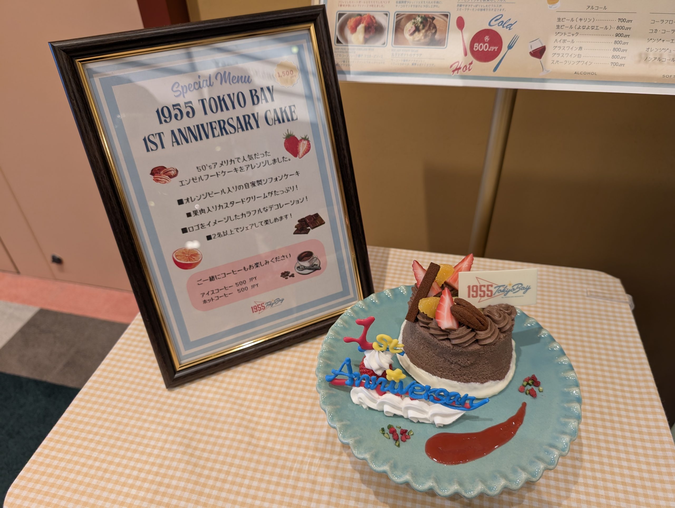 また、開業1周年を記念して「1955 Tokyo Bay 1st Anniversary Cake」が「Cafeteria」に登場しています。オレンジピール入りショコラシフォンケーキの中には、オレンジの果肉入りカスタードクリームが。こちらは、9月15日(月)まで。1日20個限定販売となります。