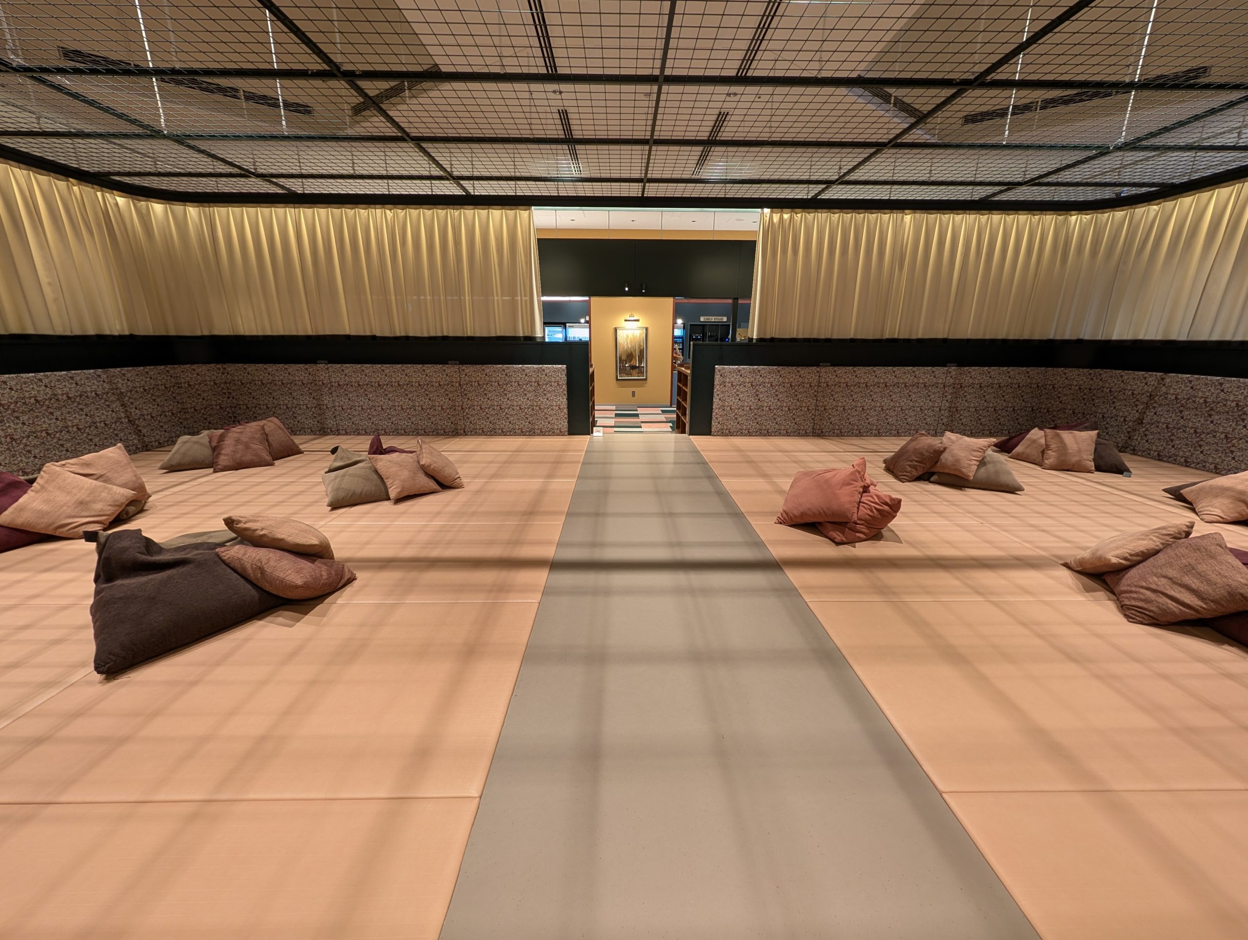 こちらは靴を脱いで一休みができるゾーン。クッションがいくつもあり、休憩にはもってこいです。特に遠方から東京ディズニーリゾートに来られる方は、初日はパークには行かず、ホテルのチェックインまで時間を持て余す場合もあるかと思いますが、「1955 東京ベイ by 星野リゾート」では、そういうニーズにしっかりと応えてくれています。
