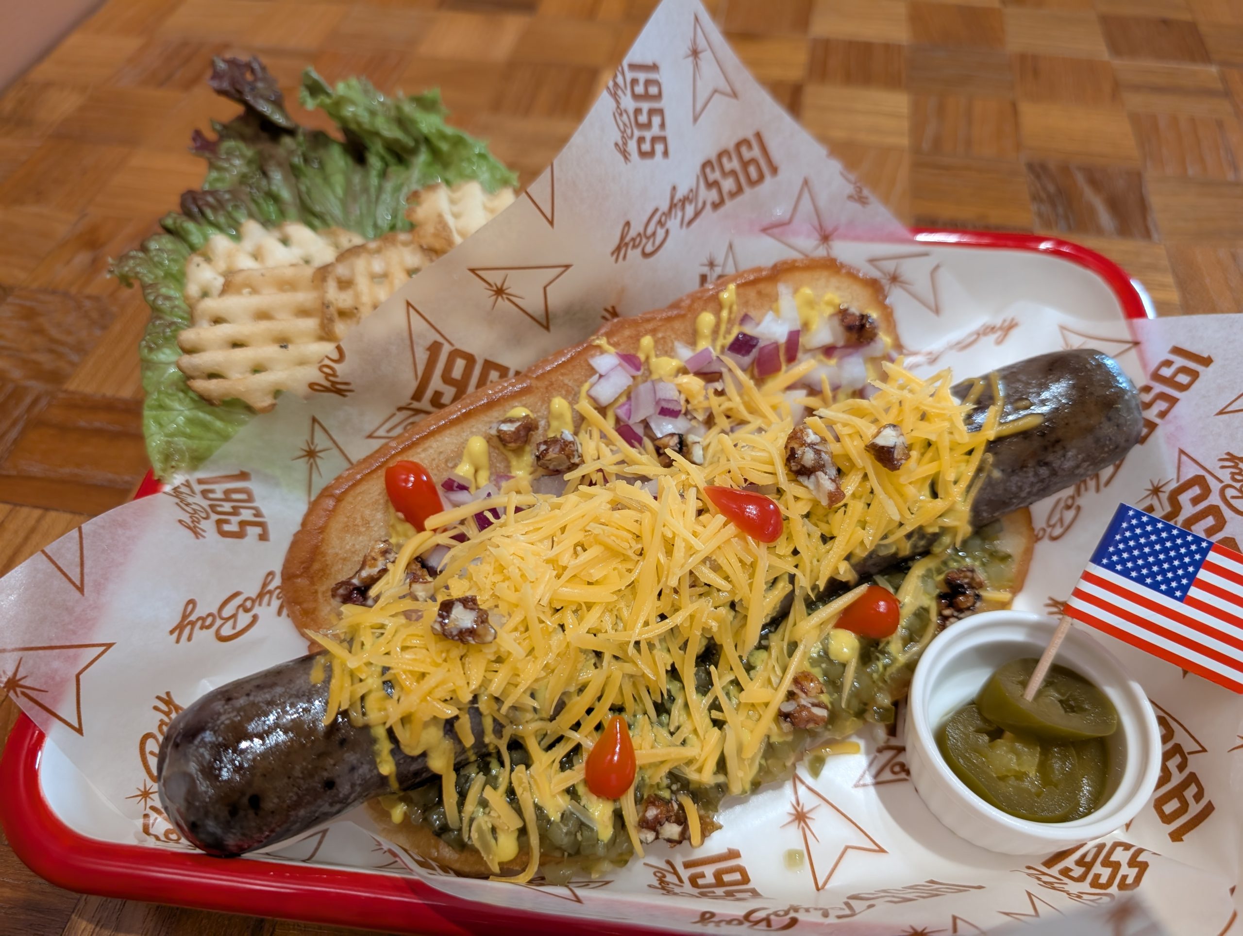 この「GIANT Beef Dog」、大きい! 満足感ある食事を食べたい方におすすめですね。ビーフを使ってアメリカンスタイルに仕上げた約200gのソーセージで、お肉の旨味が存分につまったメニューに。