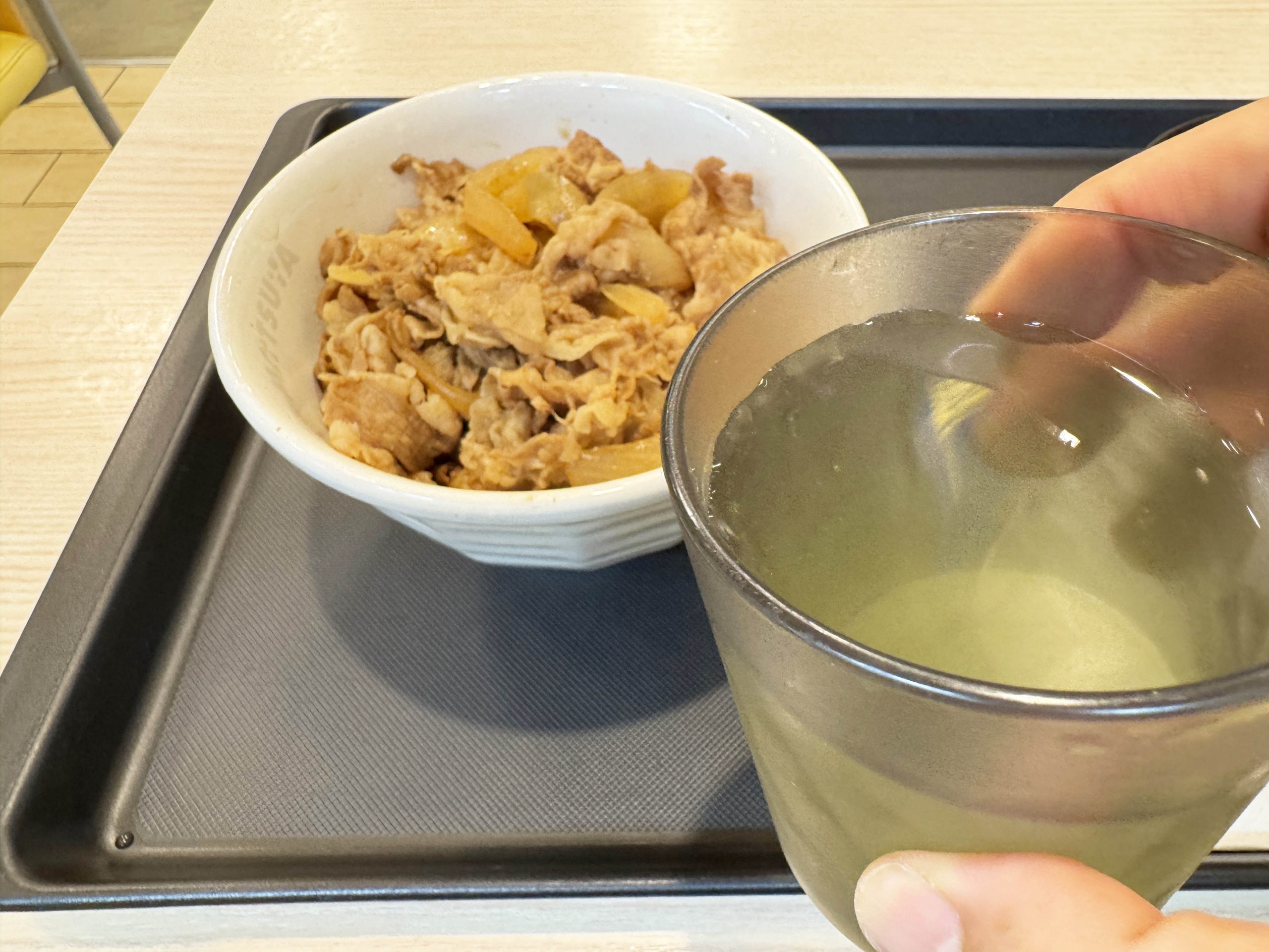 お茶って凄いですね。ここまで牛めしのポテンシャル引き出すなんて。