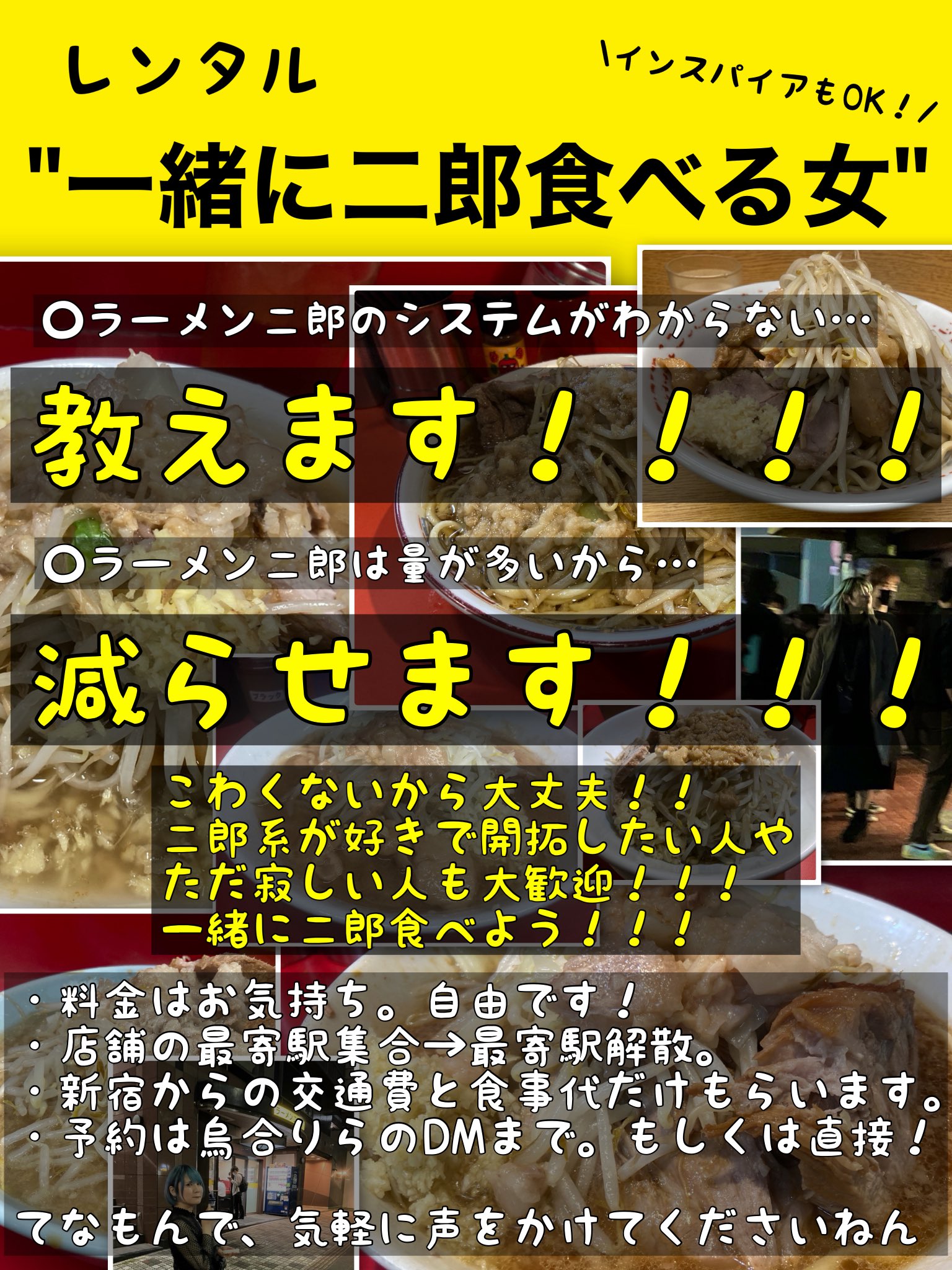 「こわくないから大丈夫!! 二郎系が好きで開拓したい人や、ただ寂しい人も大歓迎!!! 一緒に二郎食べよう!!!」
