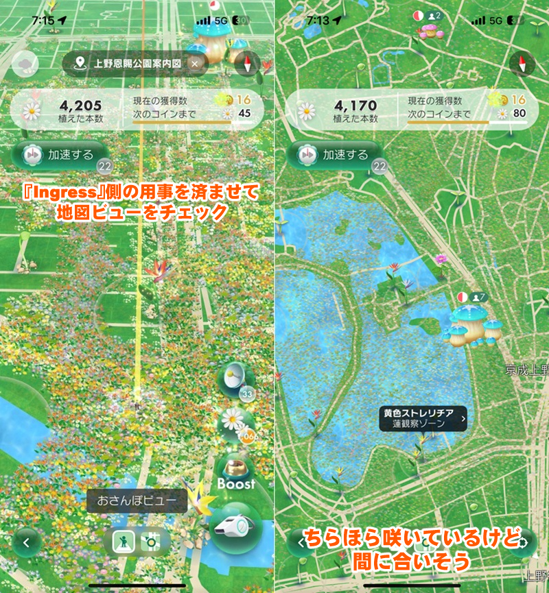 すでに開花済みのものもあったけど、確認した地点から上野公園までの移動時間を考えればエキスの収穫には十分だ。