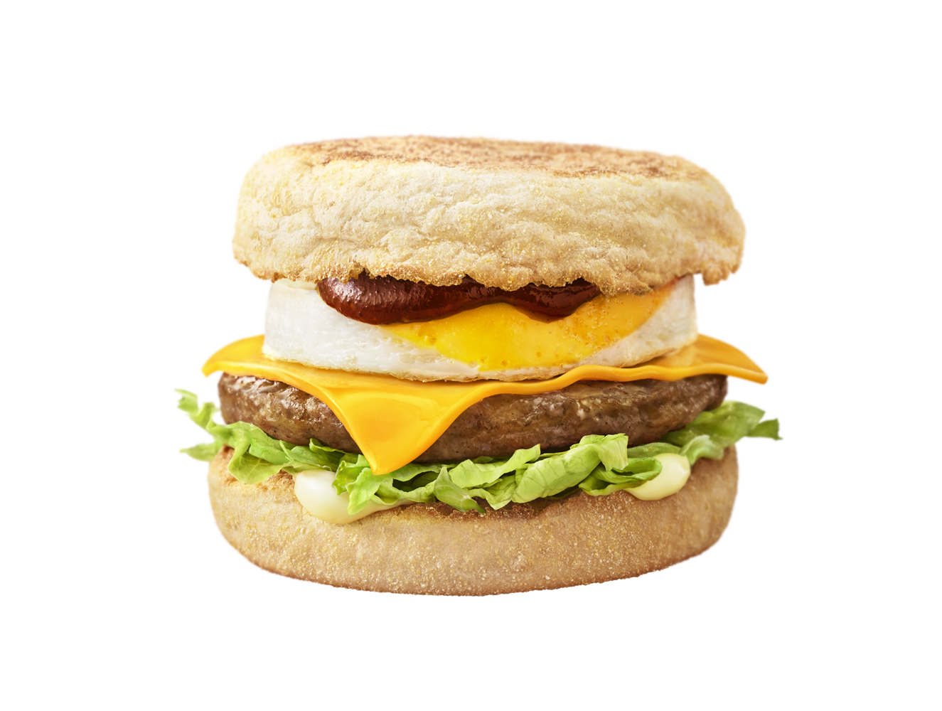 「チーズロコモコマフィンが今年はよりおいしくなって登場! お店で一つずつ蒸し焼きしている国産たまごとソーセージパティの組み合わせに、10種類以上のスパイスをきかせ、ビーフエキスを増量してよりコクのある味わいにリニューアルした特製ハワイアンバーベキューソースと、コクのあるチェダーチーズをあわせてイングリュッシュマフィンではさんだ、ハワイの名物料理「ロコモコ」をイメージした商品です」