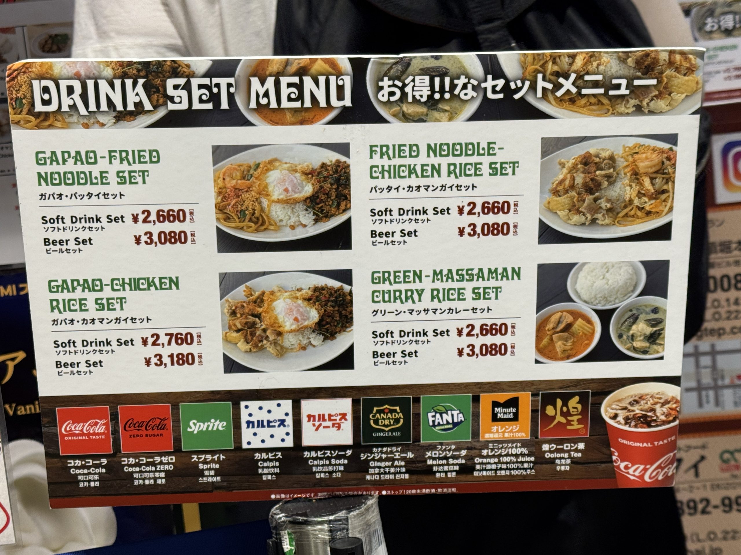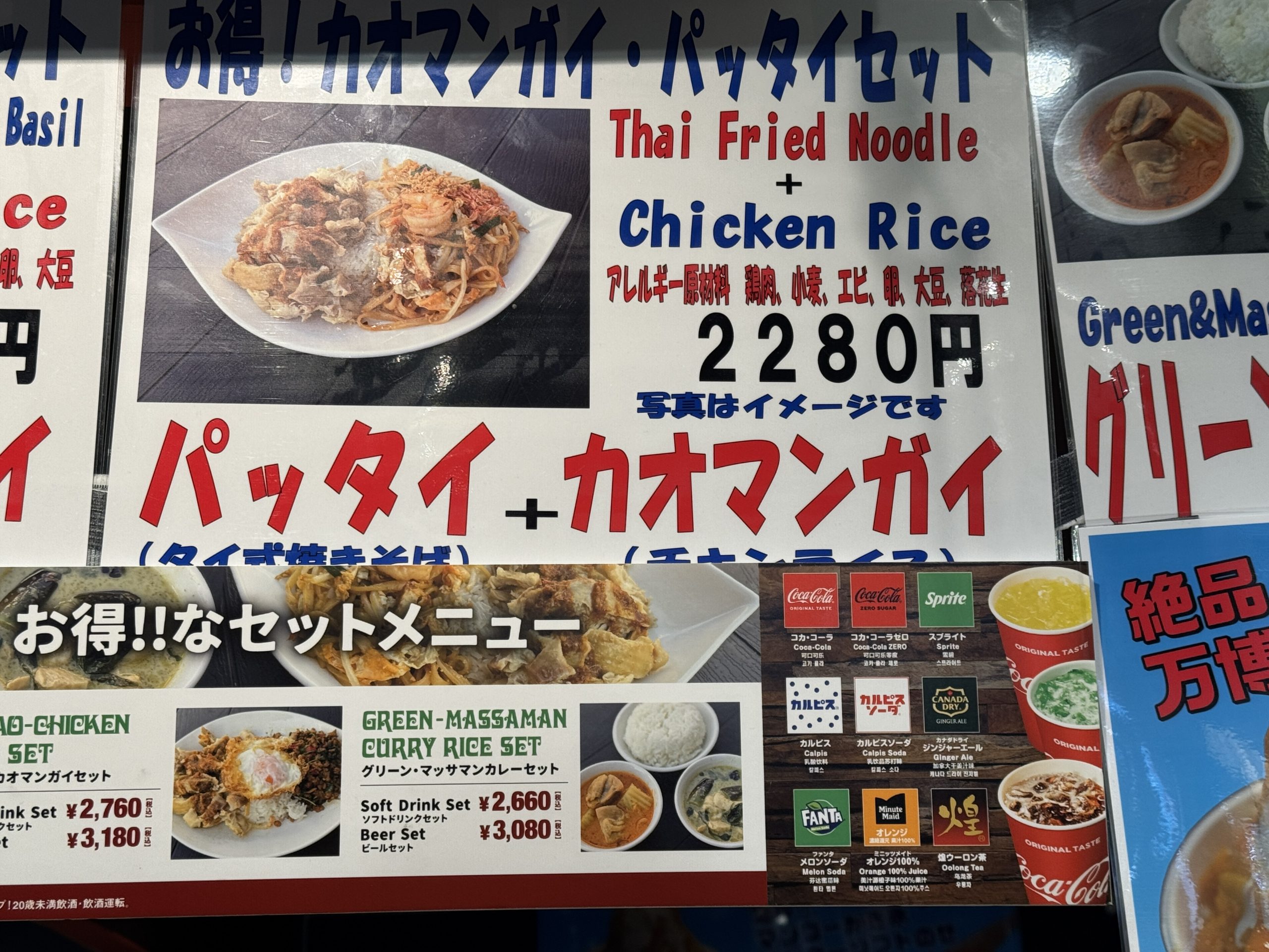カオマンガイだけでなく、パッタイもぉおおお! セットおおおお! パッタイという響きを耳にしただけで、文字を目にしただけで、タイに行きたくなる! 路上でパッタイを焼いているおばちゃんたちを思い出す人、いるはず!!