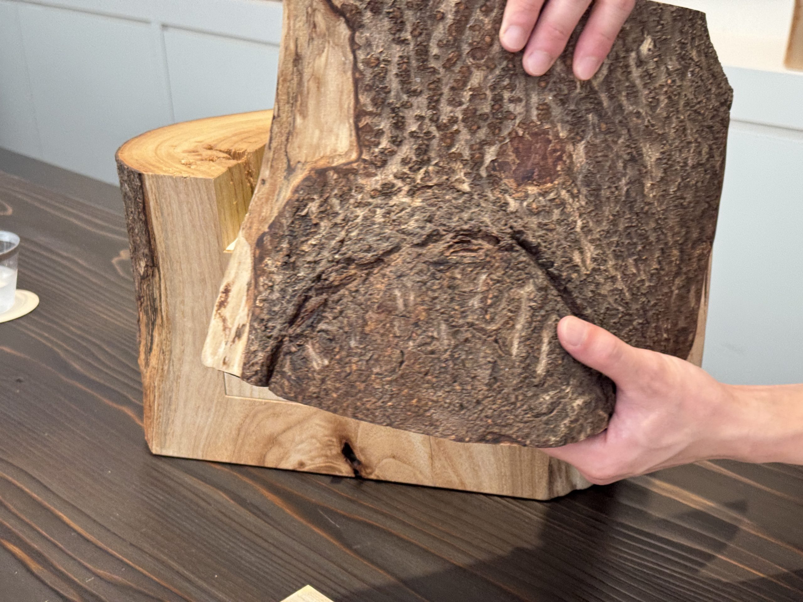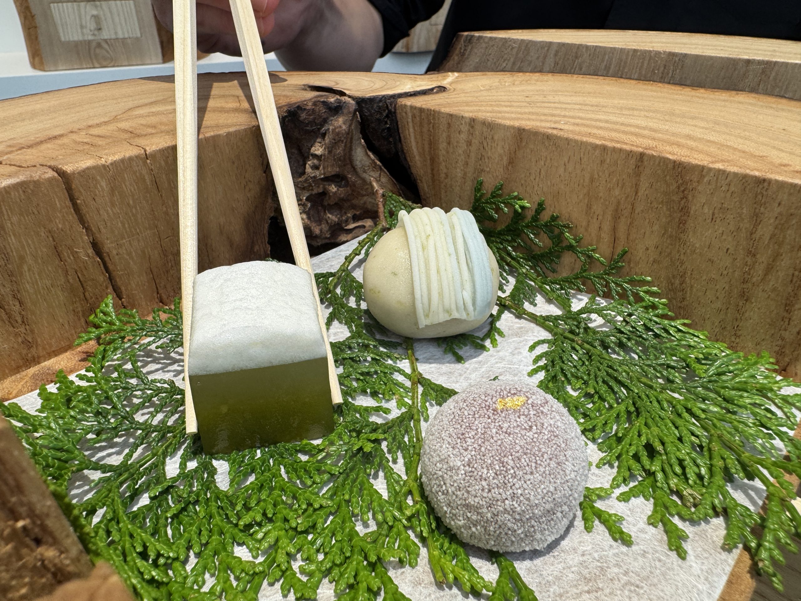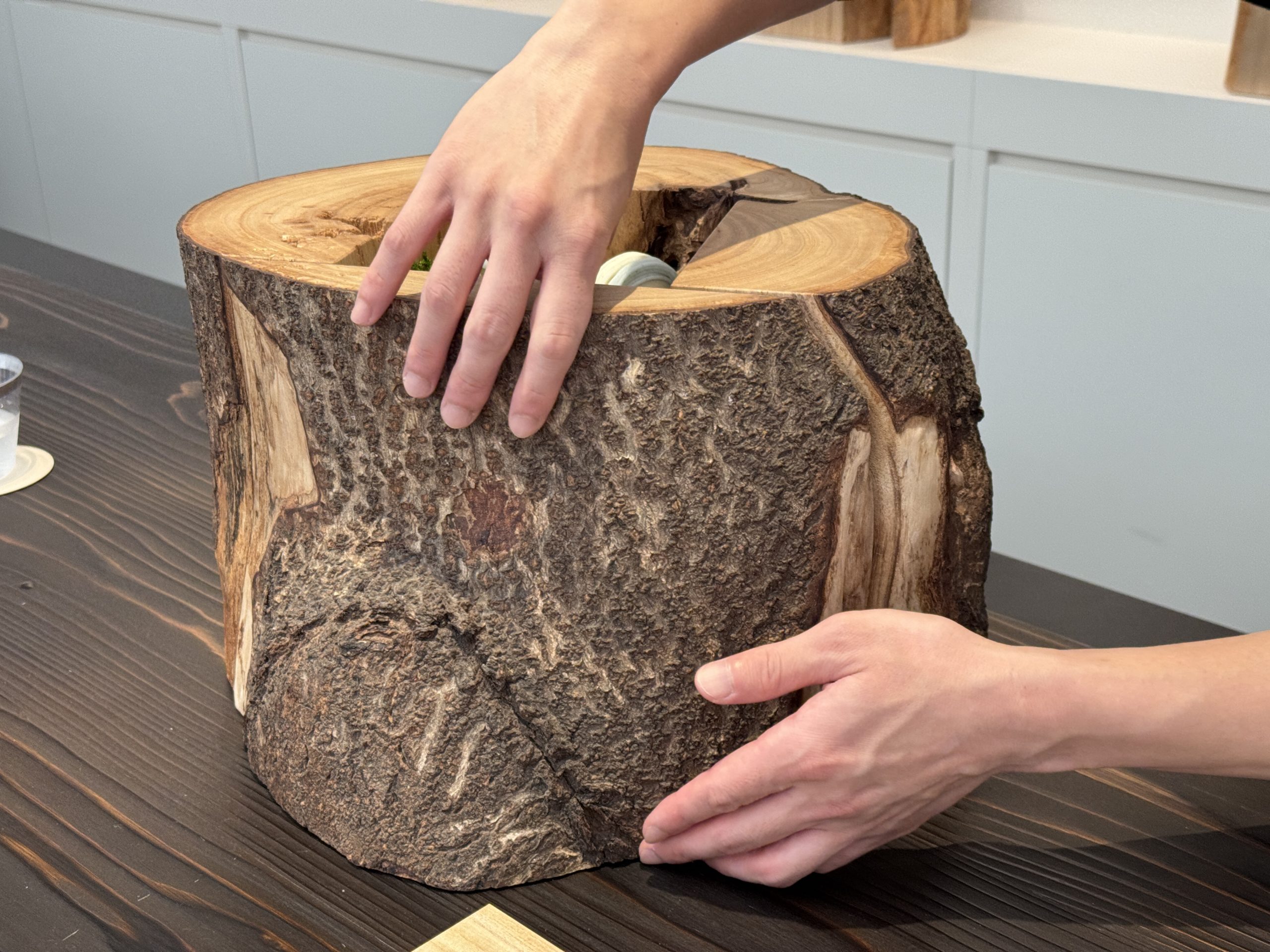 なにより、和スイーツの提供方法が驚きだ! 切株!? とにかく木の中から和スイーツの数々が現れるのだ! ちょっとこれは予想外の展開! まさに、もっともプリミティブな感じ!
