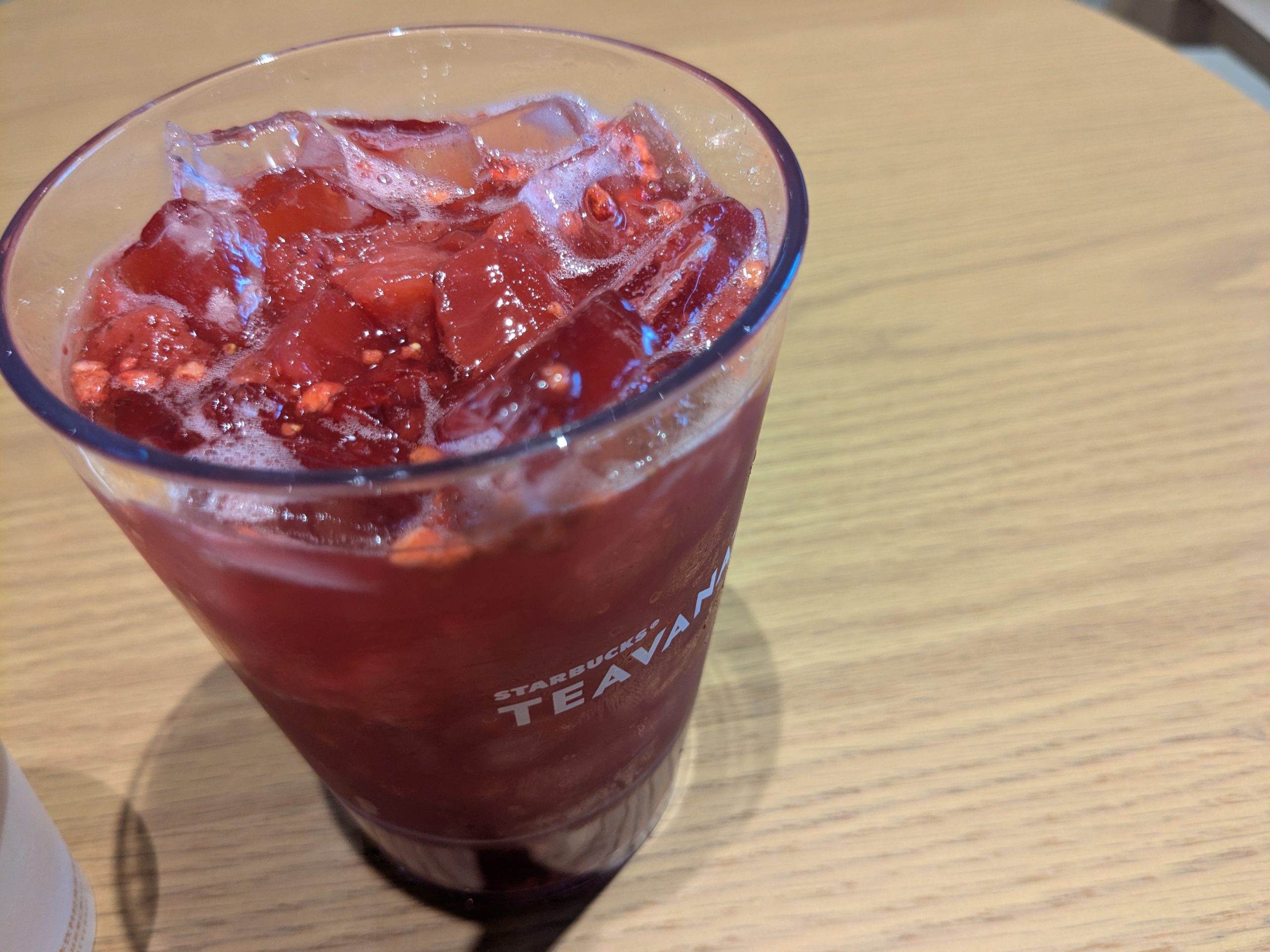とりあえず「ストロベリーパッションティー」を注文。私はスタバではティーが一番好きなので、大好きないちごとともに味わえる幸せ…