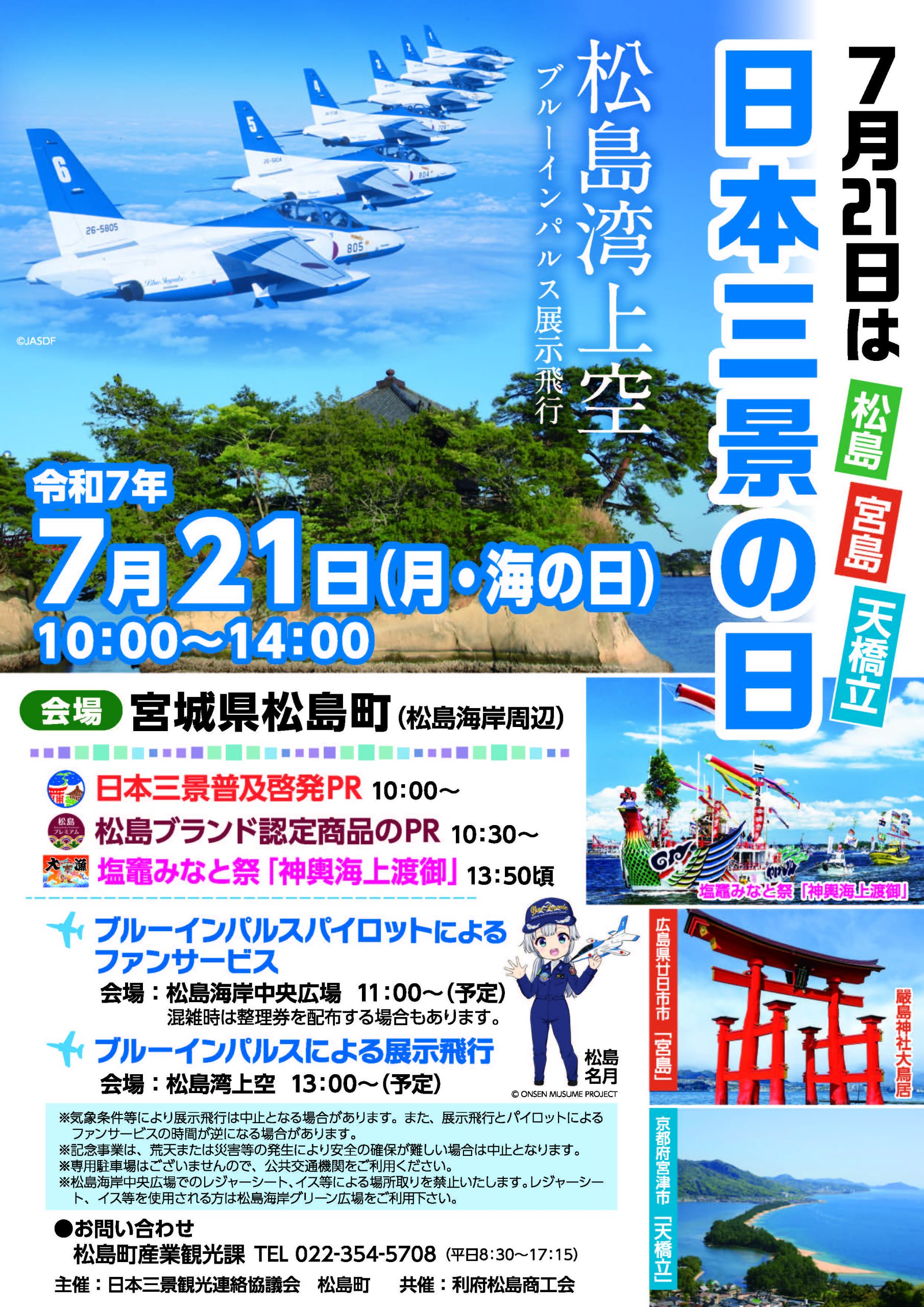 場所 宮城県松島町 松島湾上空松島海岸周辺に設けられたイベント会場では各種催しが予定されています。