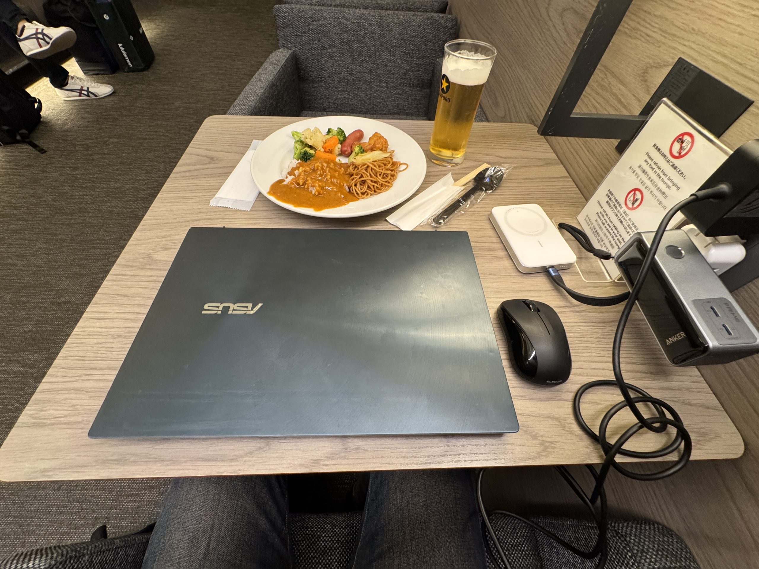 気がつけば、もう飛行機に乗る時間。ラウンジでは、カレーライスを食べることと充電しかできませんでした。仕事できず。でも、カレーライスを食べられて良かったです。ごちそうさまでした。
