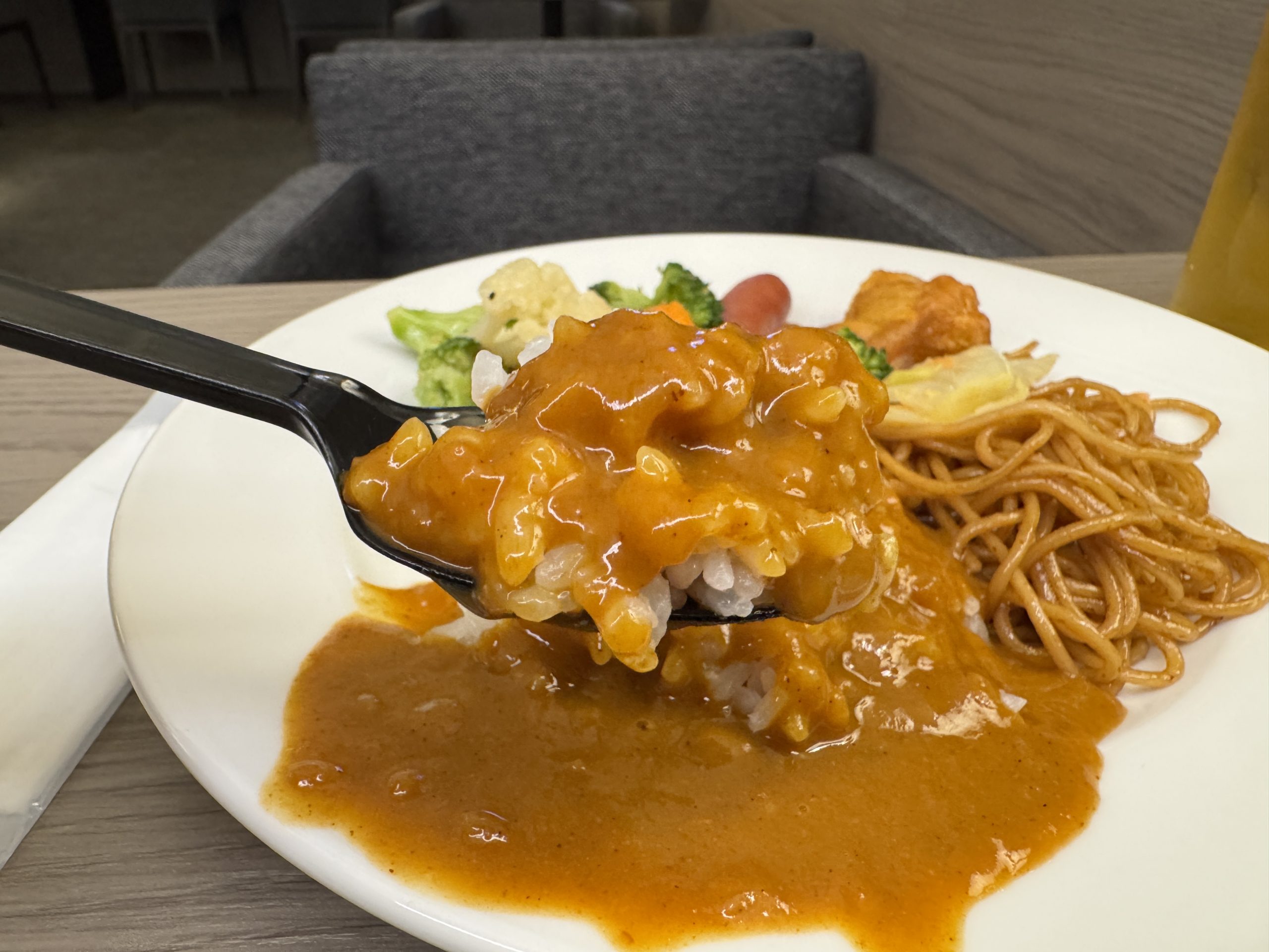 羽田空港には複数のラウンジがあるのですが、今回はスカイラウンジに行きました。ここのカレー、名指しでウマイと言っている人もいました。期待です。